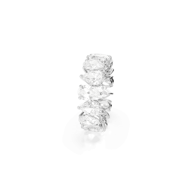 Swarovski Matrix Vittore Ring with Pear Cut White silver-tone finish, This Swarovski ring highlights the glittering brilliance of shining, faceted stones. White, drop-shaped components arranged in a single row reflect and refract incoming light. Its puristic, graceful lines make it ideal for pairing with other pieces of jewelry and creating stylish stacking looks with matched rings. A great way to dress up an outfit for important events, as well as a wonderfully clever gift-giving idea.