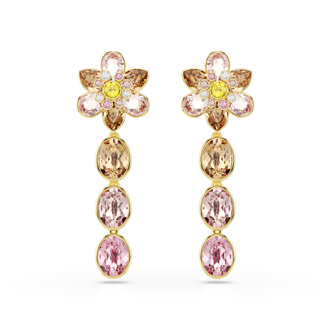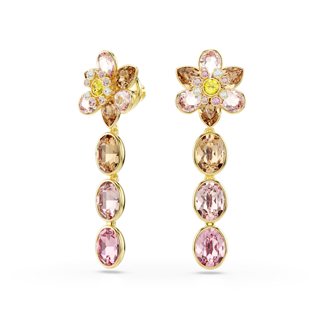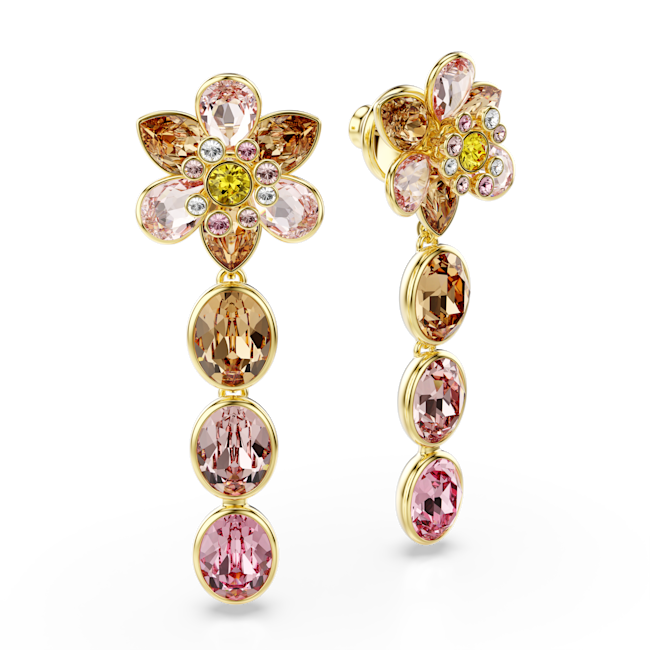 Swarovski Idyllia Drop Earrings Mixed Cuts Flower Multicolored Gold-Tone Plated