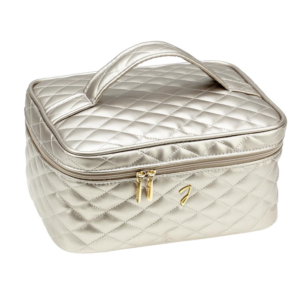 The Janeke 1830 Bronze Cosmetic Bag is the perfect balance between fashion and function. It is made of a water and stain resistant vegan leather, so it is durable enough to last through all of your travels. The roomy interior of the train case provides plenty of space to store all your essentials, while the quilted materials add a touch of luxury and ensures that they are well-protected. No matter what your destination may be, the Janeke 1830 Bronze Cosmetic Bag will keep you looking stylish and chic with its bronze color and sleek design. The top handle allows you to easily carry it while running errands, and the zippers open easily to allow you to access all your items. All of this combined with the fact that it is made in Italy makes the Janeke 1830 Bronze Cosmetic Bag the perfect addition to your travel bag collection.