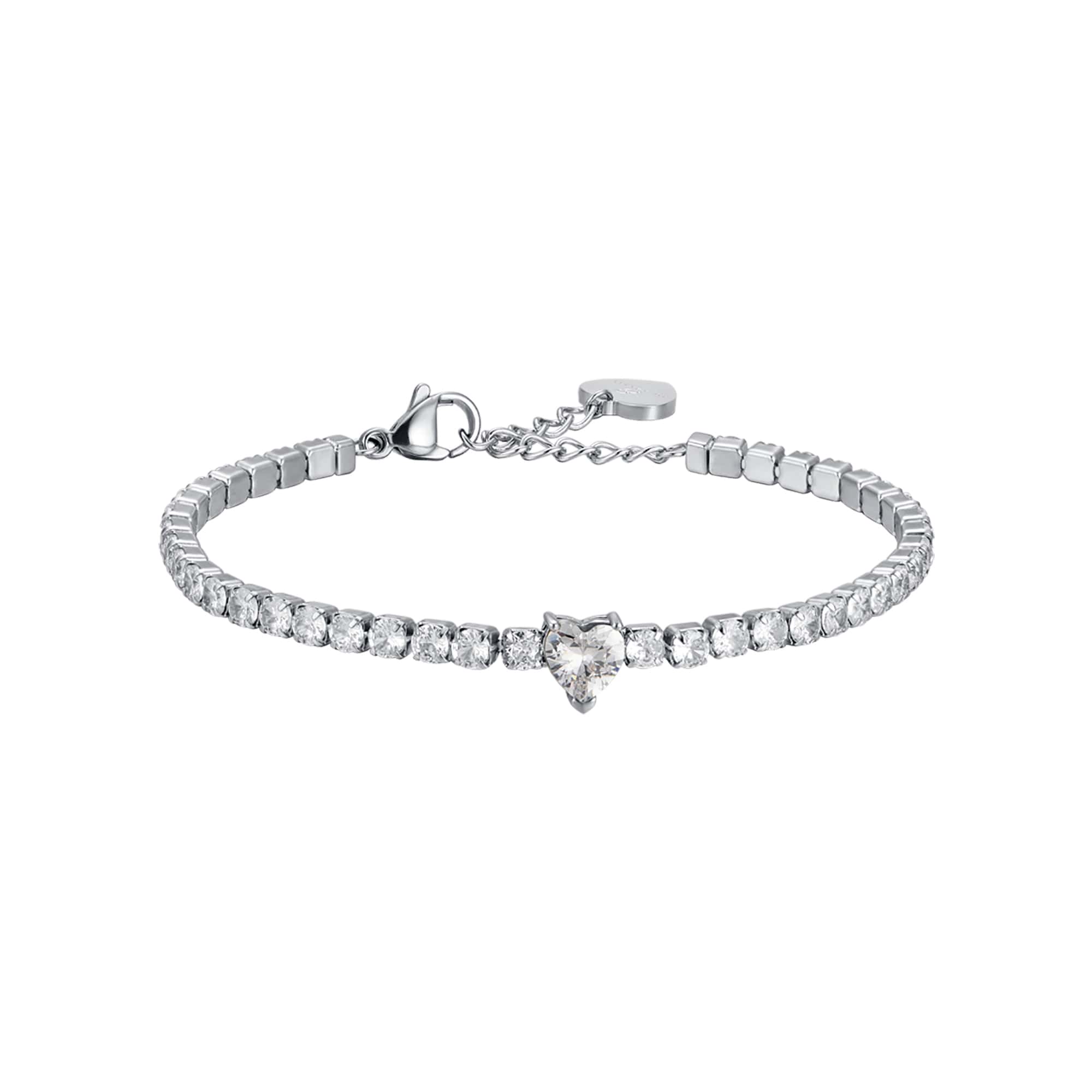 Luca Barra Ladies Steel Bracelet with White Crystals and Crystal Heart