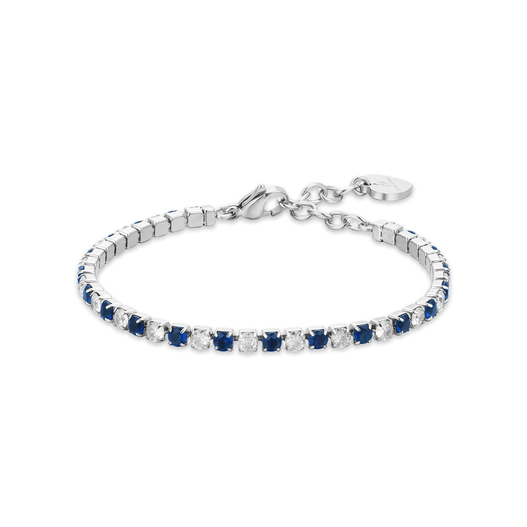 Luca Barra Ladies Tennis Bracelet with Blue and White Crystals