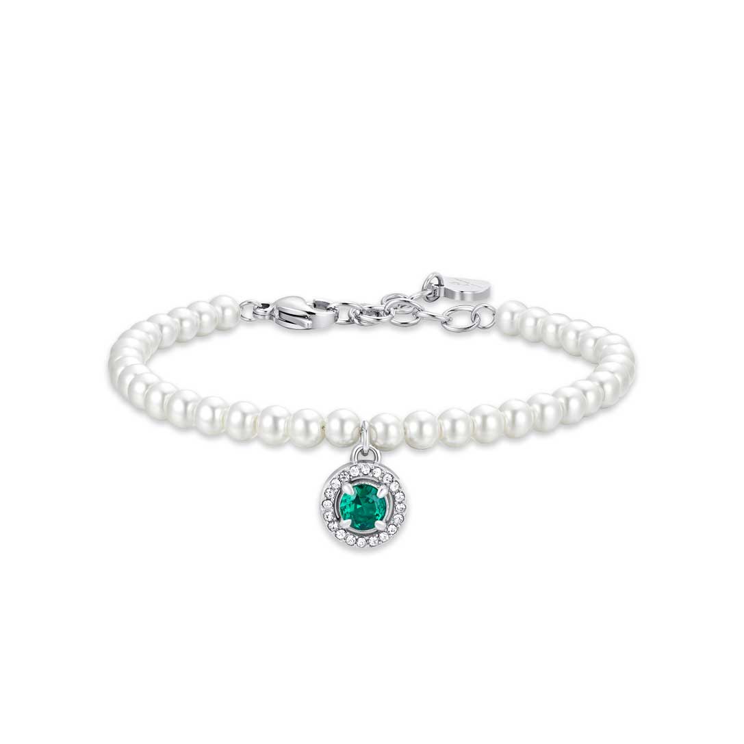 Luca Barra Ladies Steel Bracelet with White Pearls and Green Zirconia