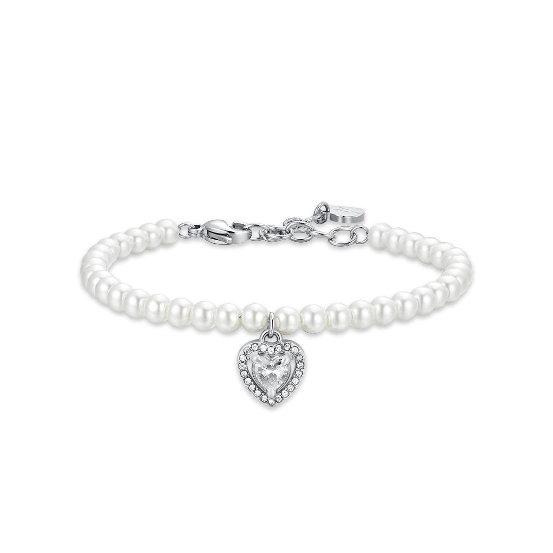 Luca Barra Ladies Steel Bracelet with Pearls and White Zircon Heart