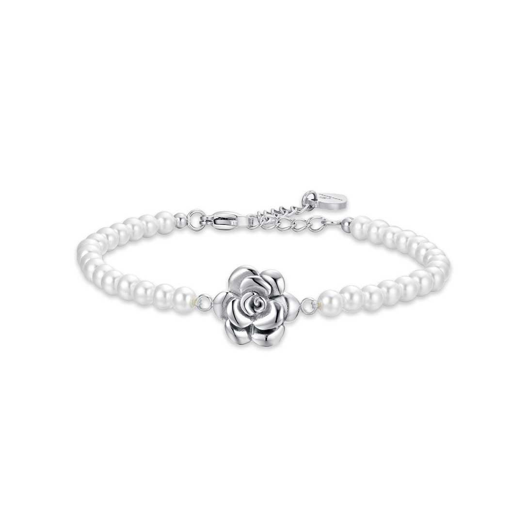Luca Barra Ladies Steel Bracelet with Pearls and Rose