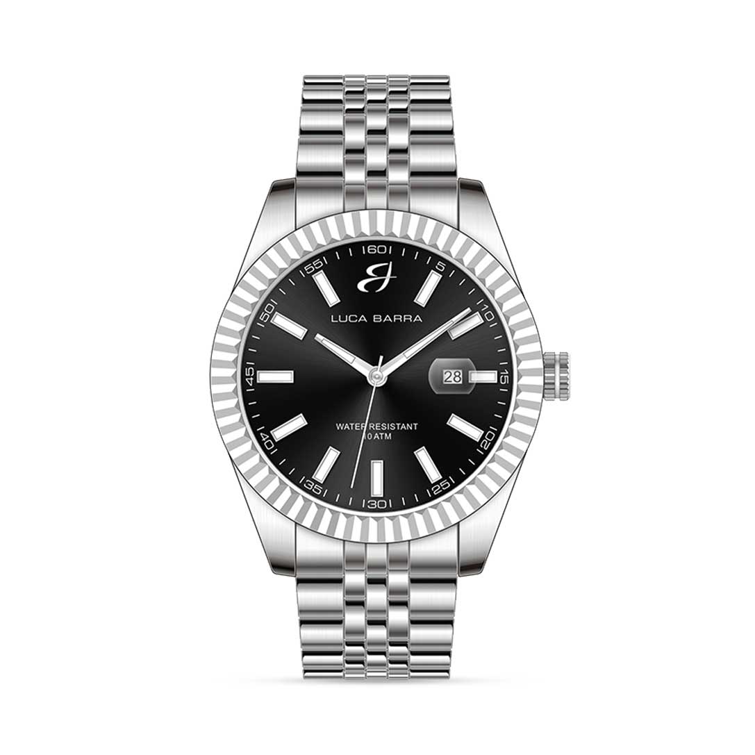 Luca Barra Gents Steel Watch with Knurled Bezel