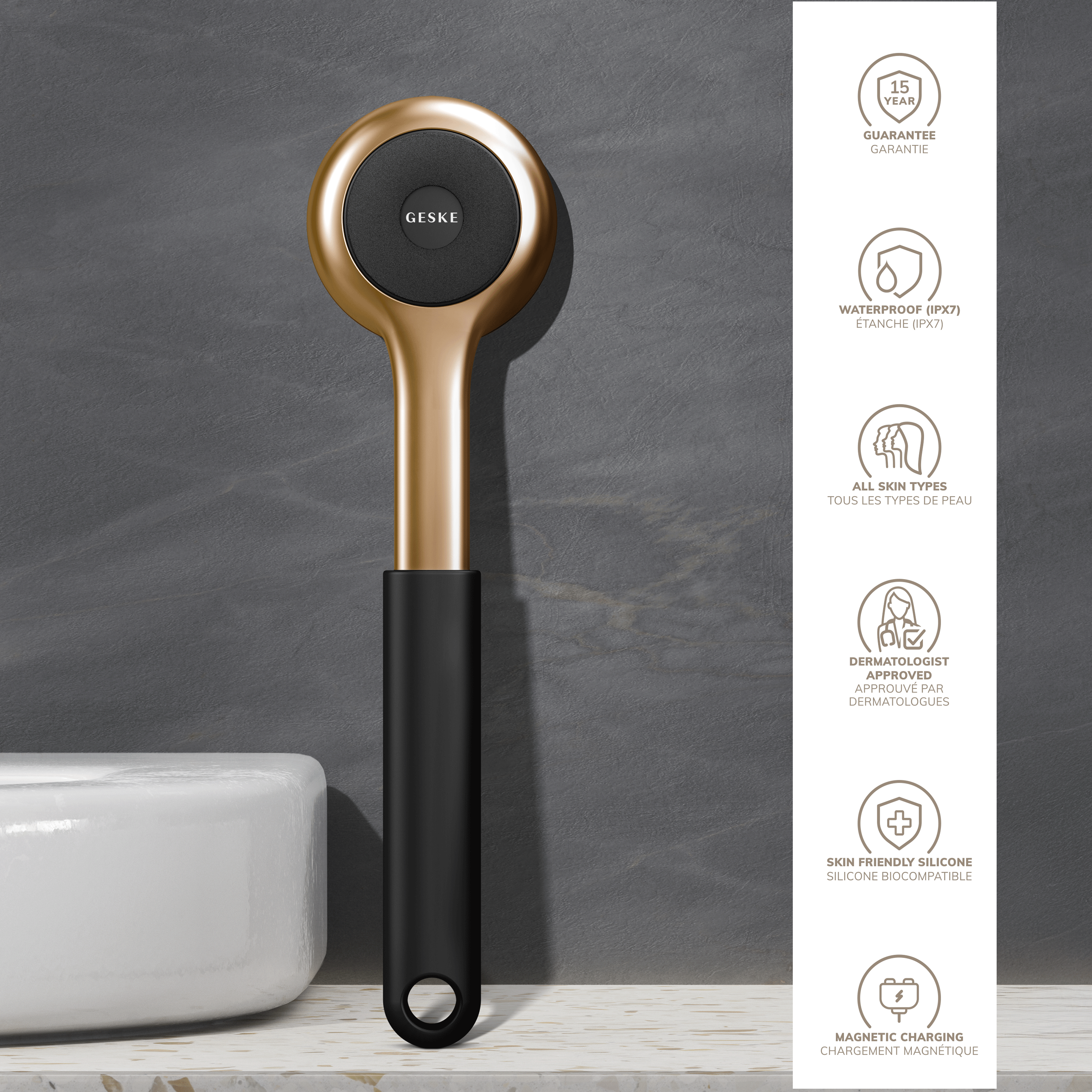 Caring for your body doesn't have to begin and end with a shower. Explore our range of derma rollers and cool and warm massagers designed to tone and lift the entire body. For an instant Skin Scan, go ahead and download the free GESKE app. Powered by cutting-edge AI technology, the app's powerful algorithm analyzes your skin and recommends devices that are perfectly tailored to your skin’s needs. Set your Skin Goals and dive into the never-before-seen experience of observing your skin inching towards visible perfection with GESKE.