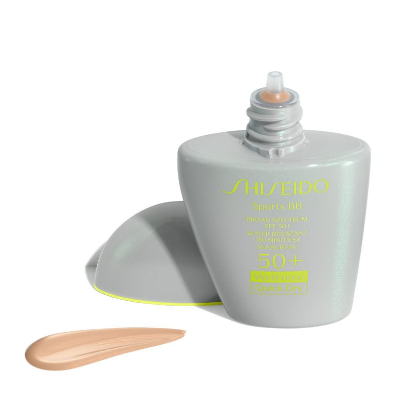 Shiseido Sports BB SPF50+. Protects your face against UV-radiation and premature skin ageing. Gives your skin an even complexion, masking imperfections. The BB cream is non-comedogenic. Application: Apply to clean skin, evenly distributing from the middle of your face outwards.