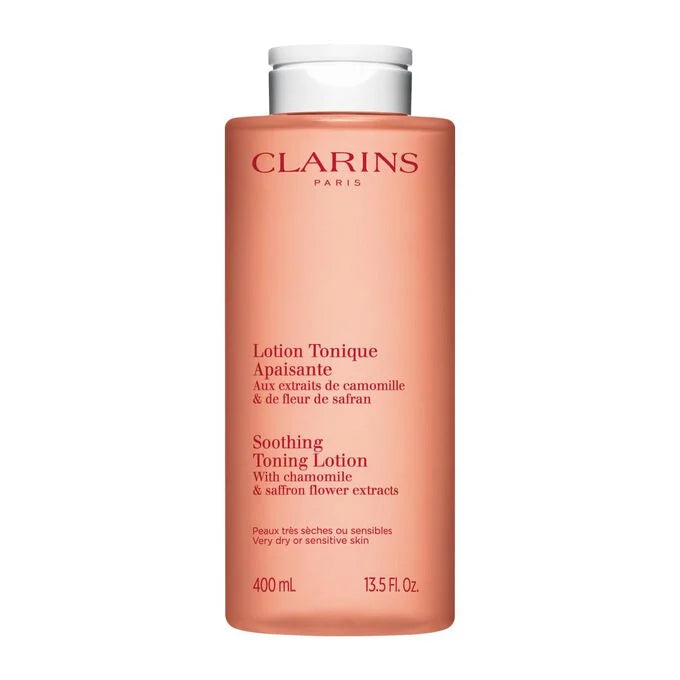 Enriched with Clarins' [Microbiota Complex], which combines polyphenols from saffron flowers and marine-based prebiome, this refreshing and lightweight toner helps to preserve the balance of skin microbiota. Organic chamomile extract soothes and softens the skin. The same Soothing Toning Lotion you know and love, redesigned in more eco-friendly bottle to reduce our environmental footprint. And, for the first time, you can replenish your Soothing Toning Lotion thanks to its new eco-refill. Good for your skin, good for the planet. Perfect for very dry or sensitive skin.