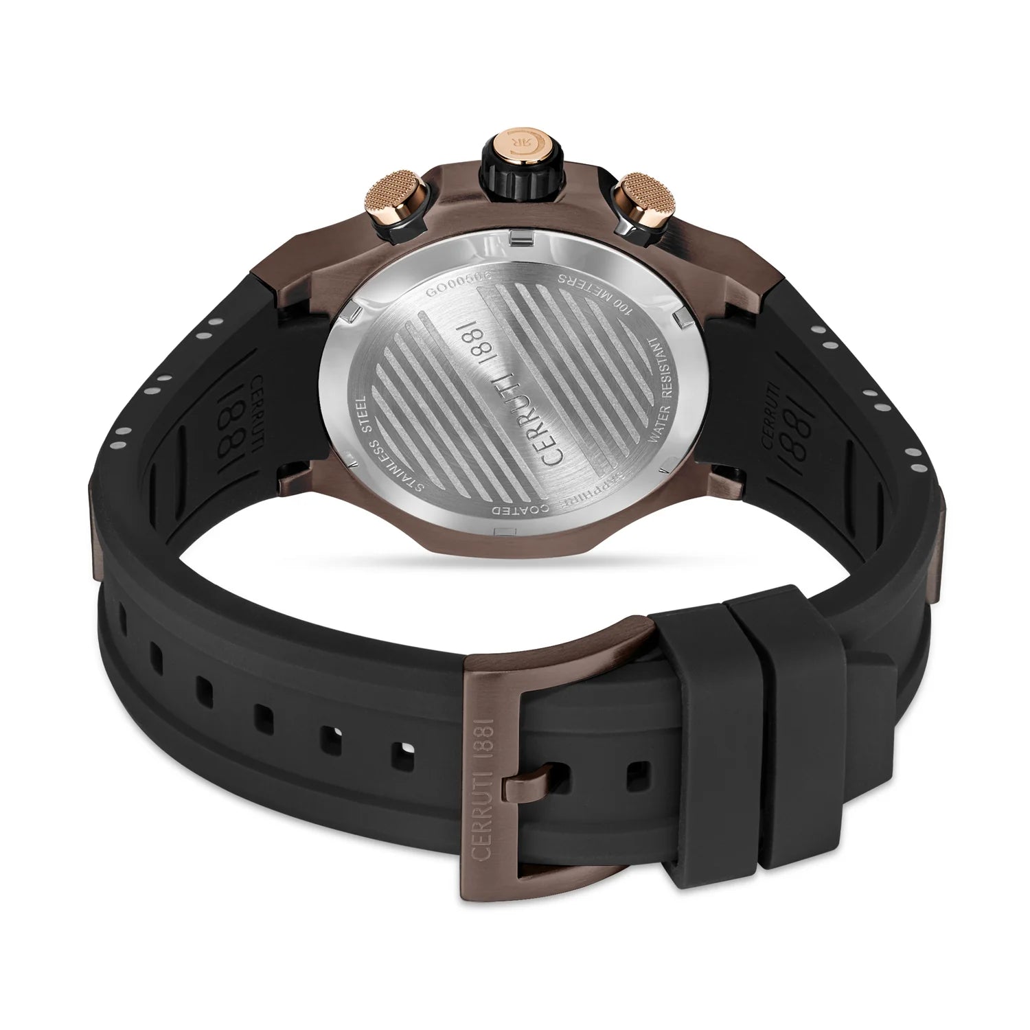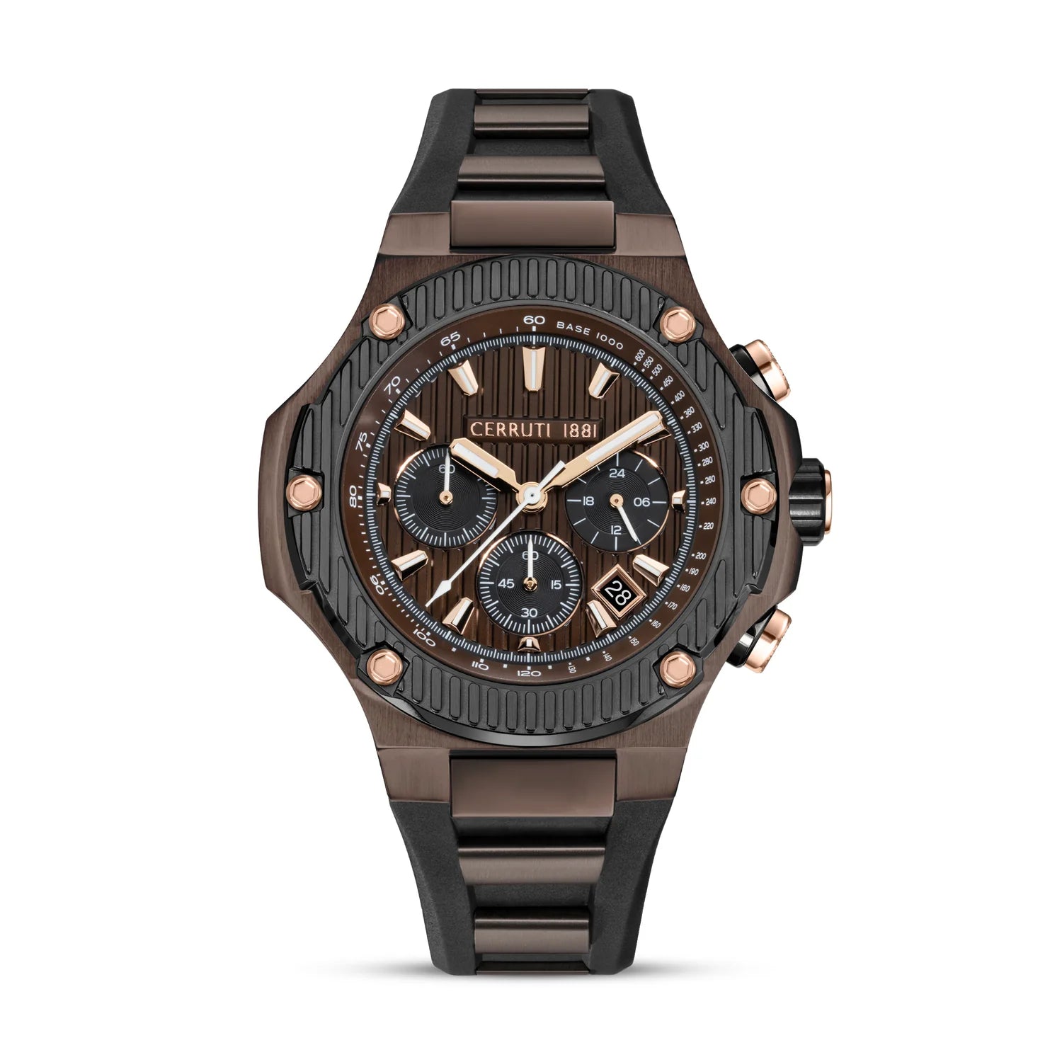 Cerruti 1881 Lucardo Gents Chronograph Brown IP Case Brown Dial Rose Gold Elements Two-Tone Silicone Strap Watch