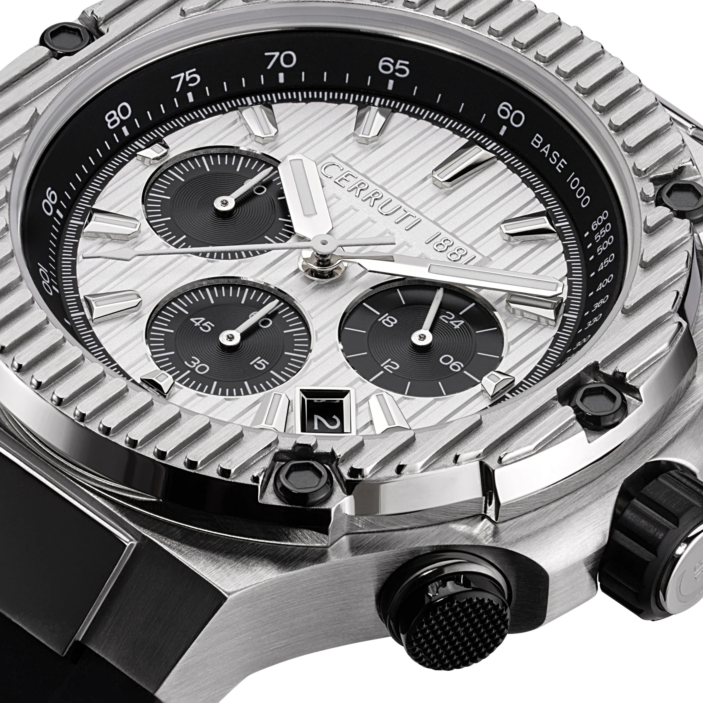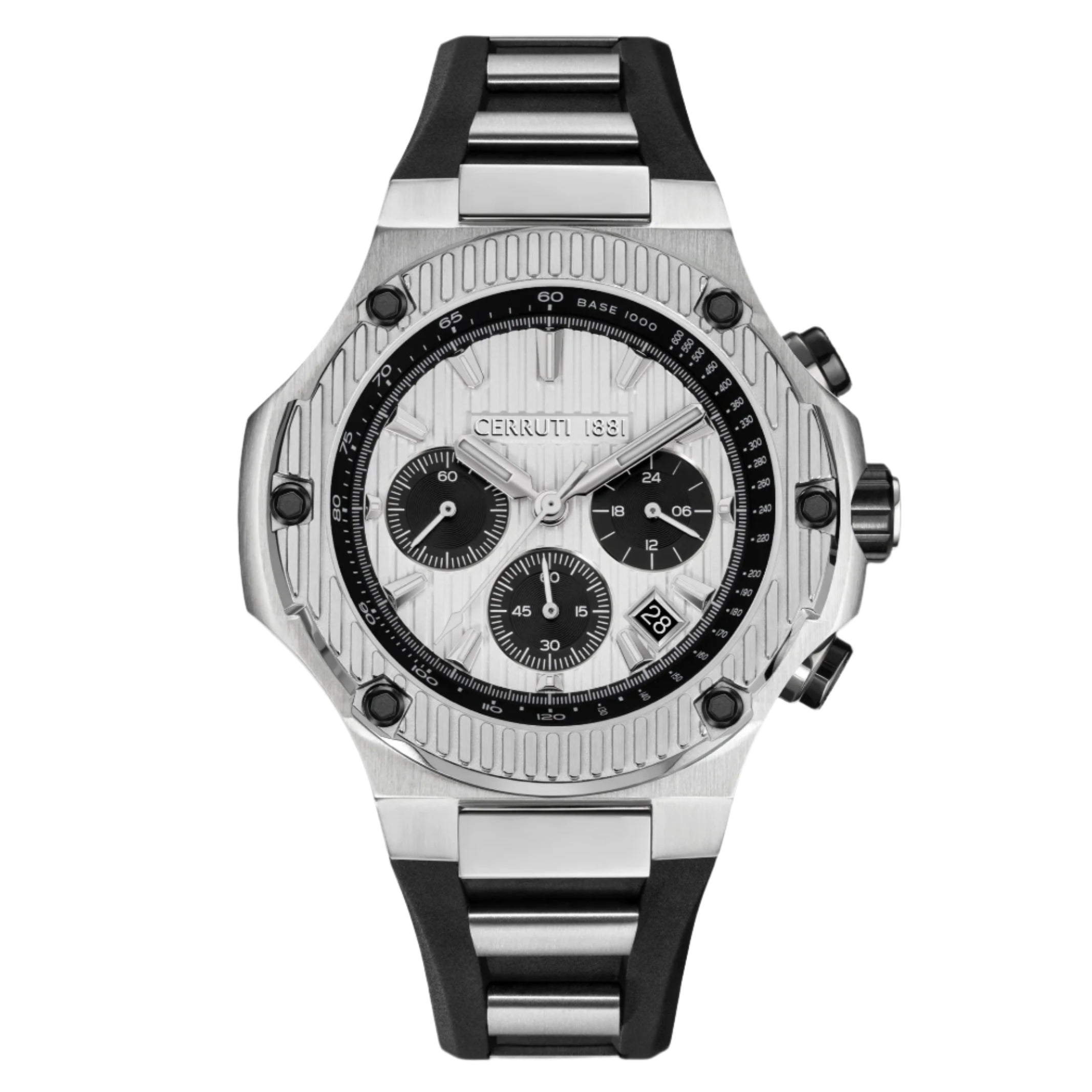 Cerruti 1881 Lucardo Chronograph Gents White Dial, Two-Tone Stainless Steel and Black Case with Black Silicon Strap Watch
