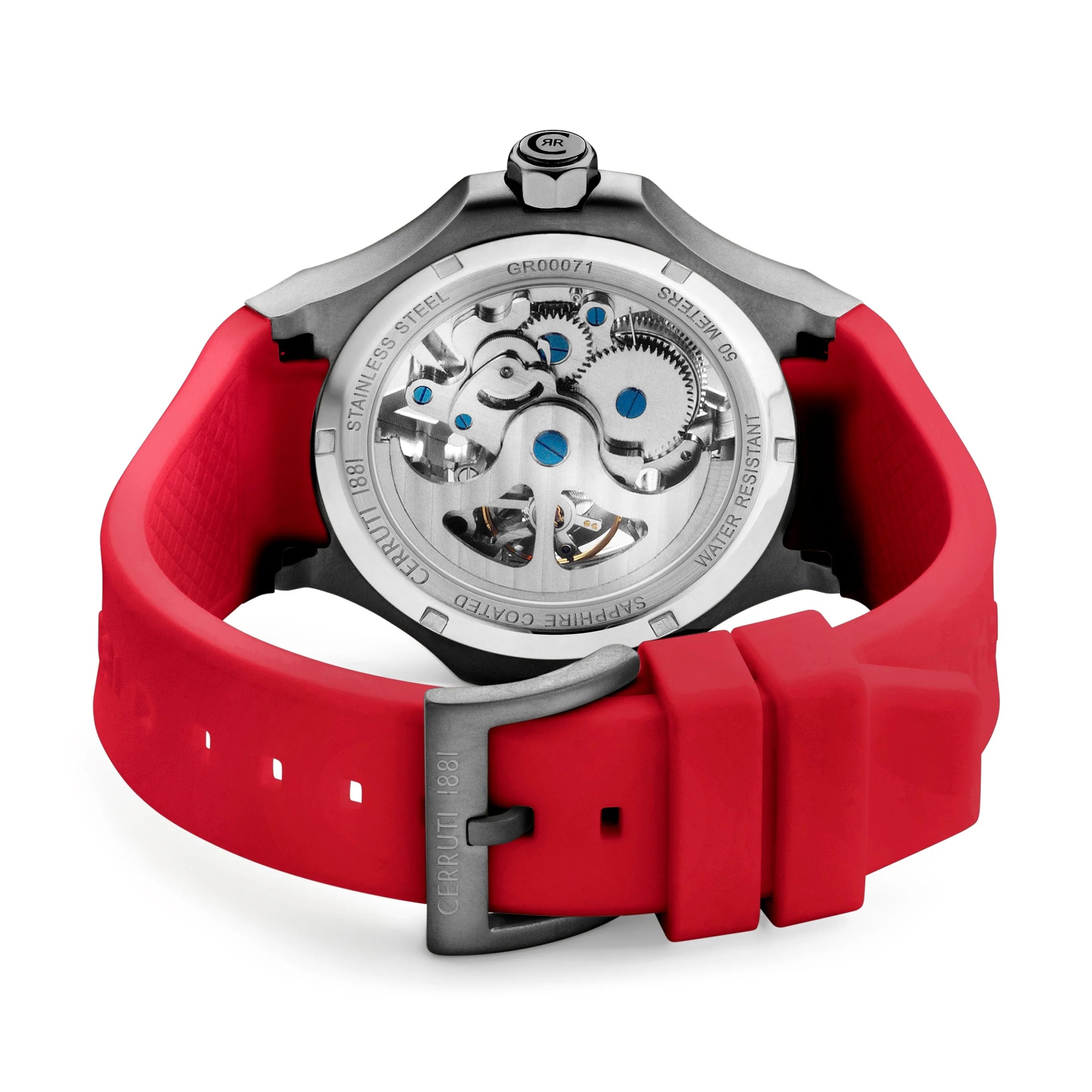Cerruti Lucardo Gents Automatic Black Dial Gun Case Red Silicon Strap Watch