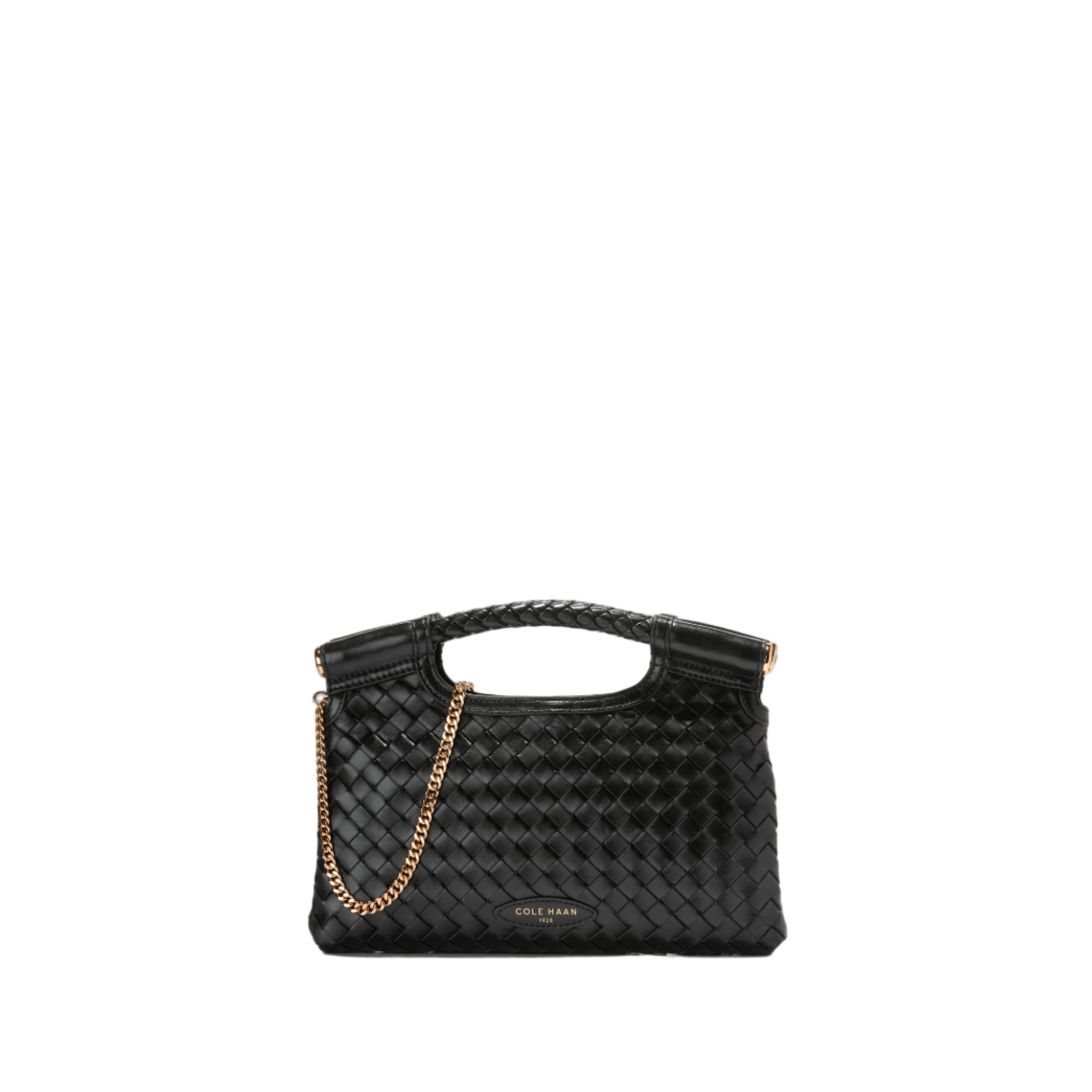 The Cole Haan Women's Carolyn Evening Clutch in black seamlessly combines elegance and versatility for any special occasion. Crafted with beautifully woven leather, this clutch showcases sophisticated texture and design, making it a standout accessory. The magnetic snap closure ensures your essentials stay secure while offering easy access. For added functionality, the Carolyn Evening Clutch features a removable chain crossbody strap, allowing you to carry it hands-free or as a classic clutch. Inside, an interior zip pocket helps keep small valuables organized, making this a practical choice as well as a stylish one for any evening event.