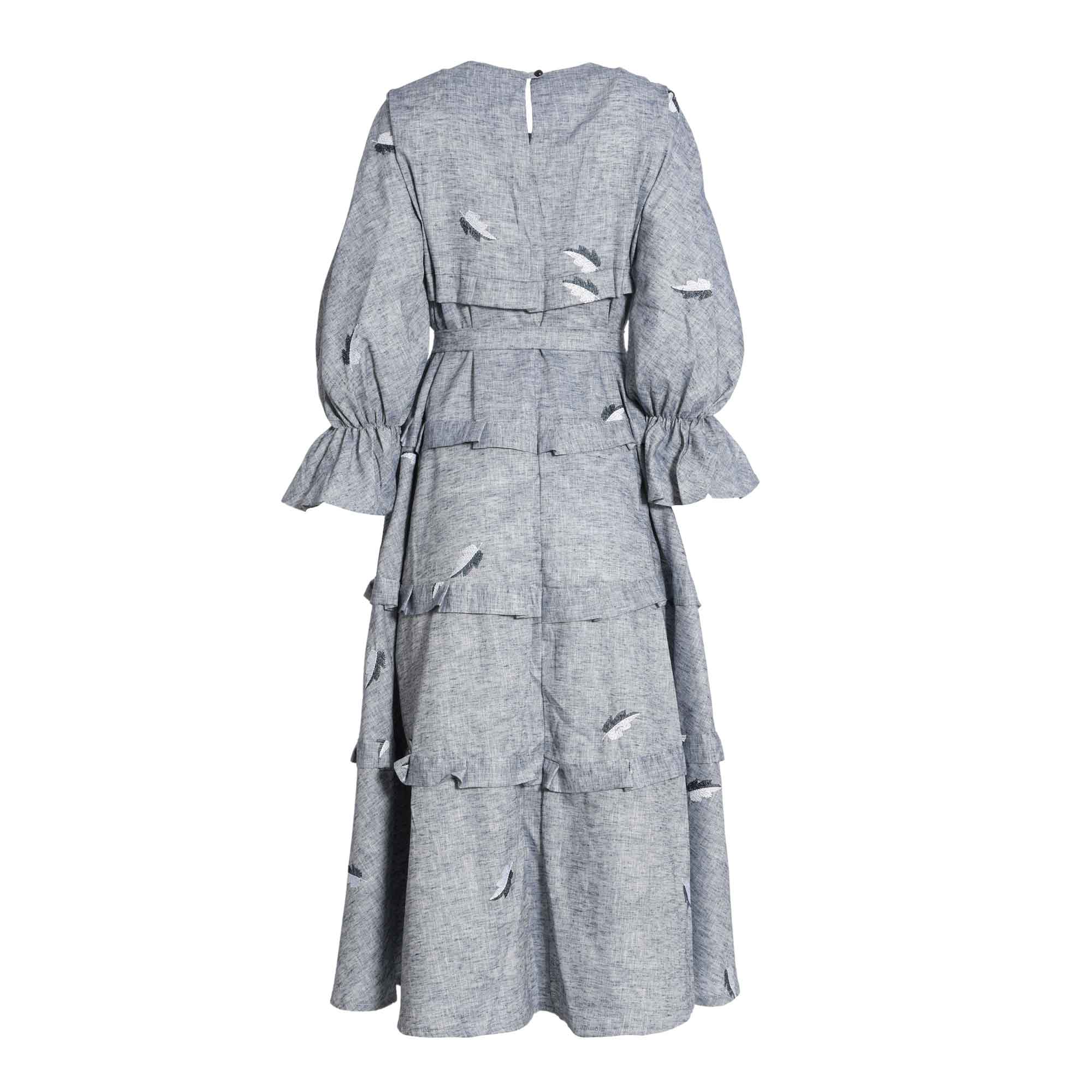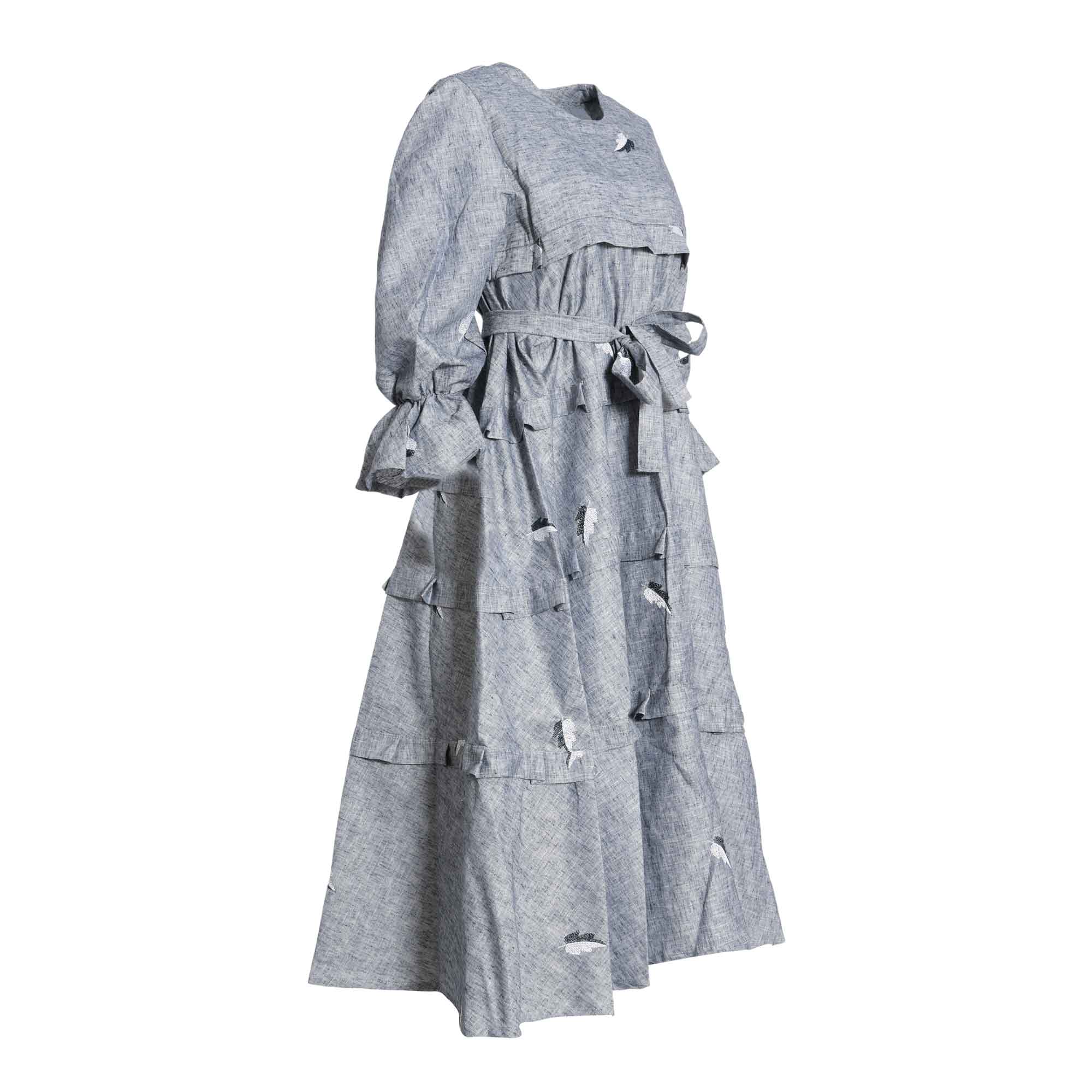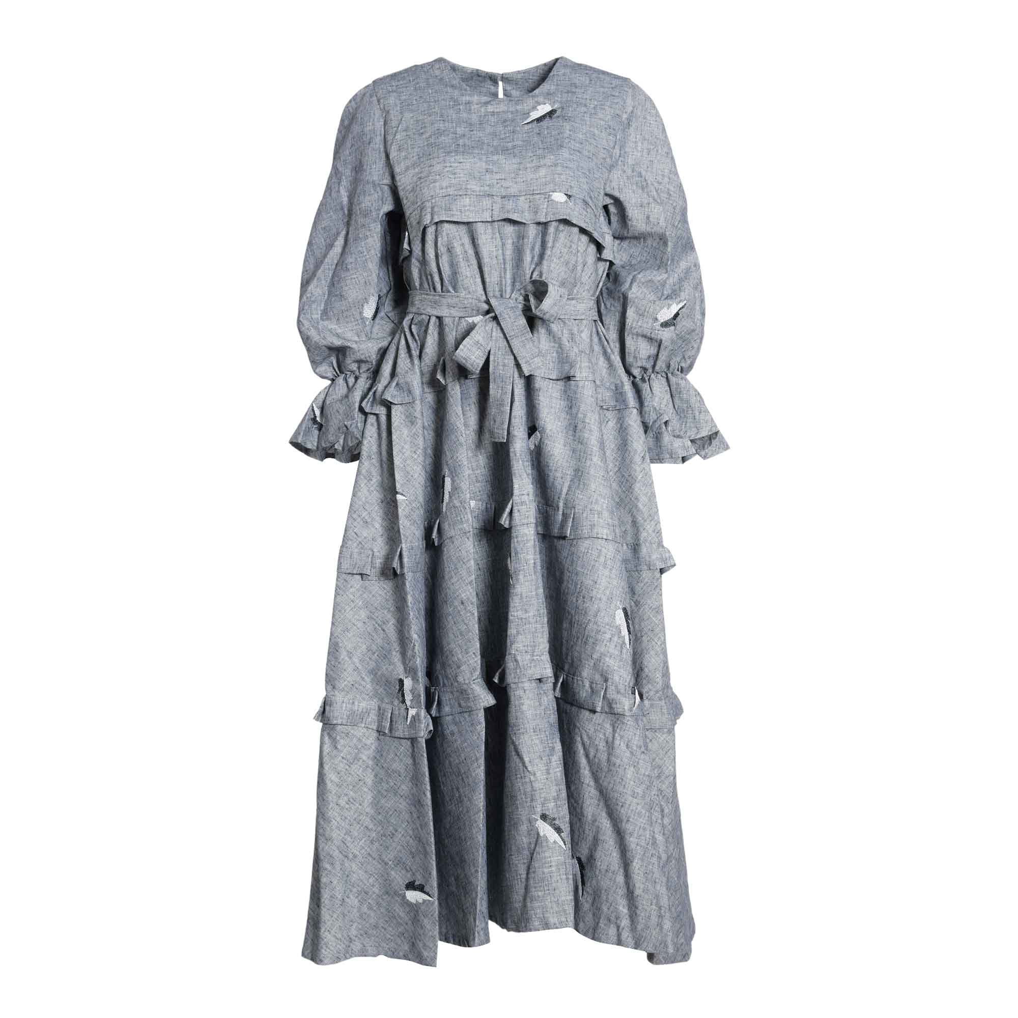The Fahm Women's Denim Dress is a stylish and comfortable piece of clothing perfect for any occasion. With its free size, round neck, and long elasticated sleeves, this dress is comfortable and easy to wear. The added detail of ruffle trim and a matching belt tie with an embroidered leaf design all over it make this dress look elegant and chic. The back button fastening is also a great feature, making it easy to take on and off. Whether you're dressing up for a night out or just staying in, the Fahm Women's Denim Dress is sure to make you look and feel your best. SPECIFICATIONS: