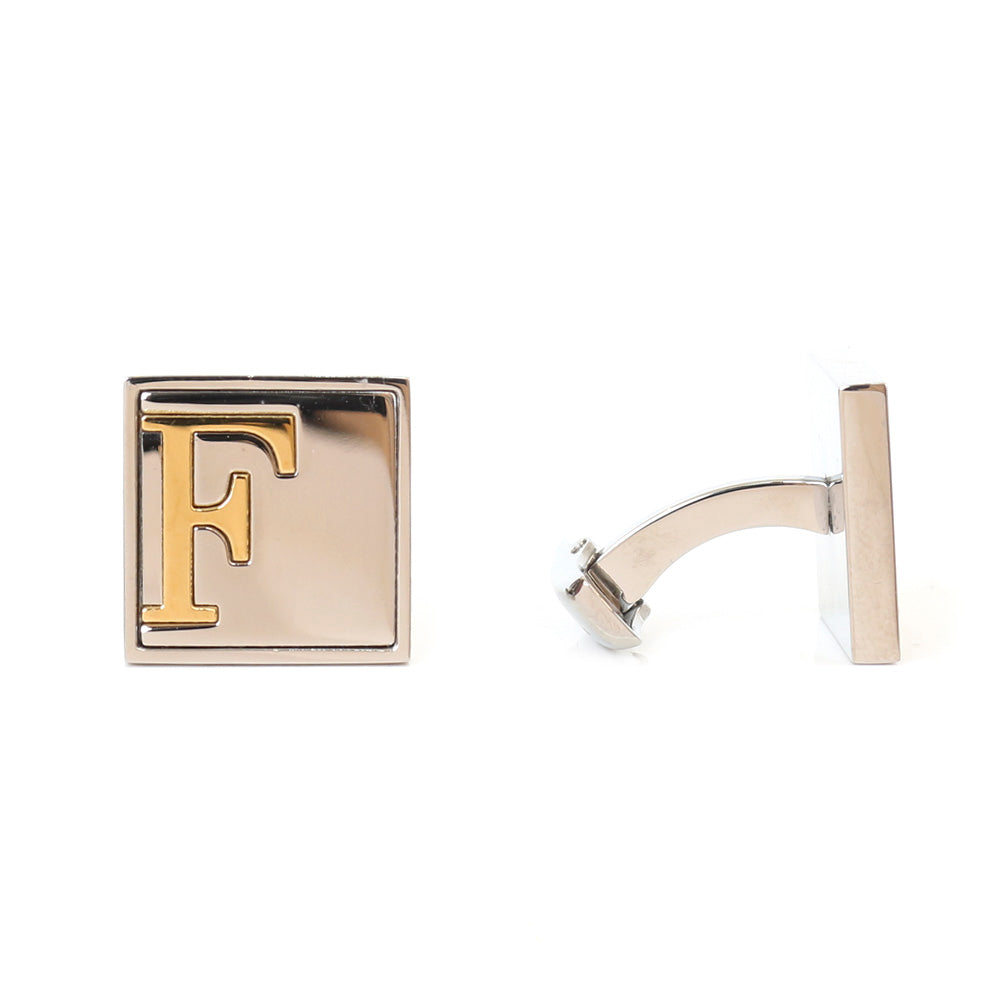 ازرار فري ميلانو فضي من الستيل مع شعار F ذهبي