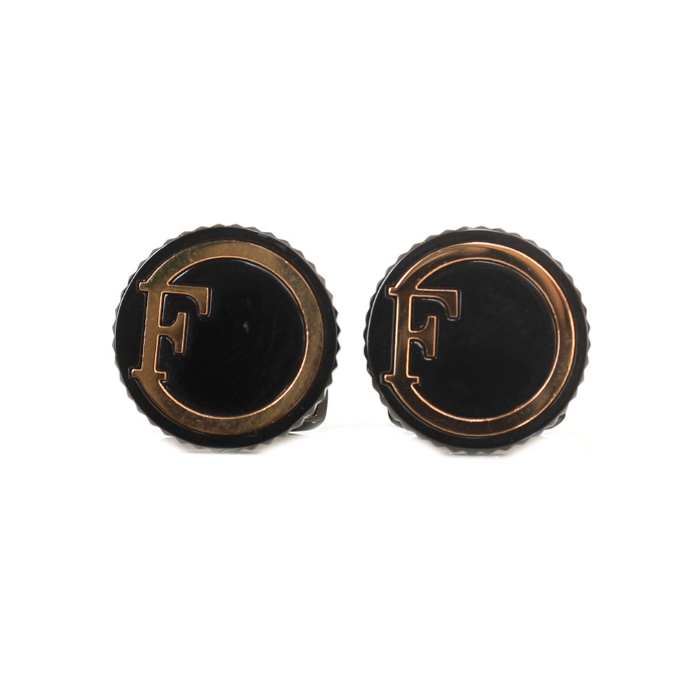 ازرار فري ميلانو اسود من الستيل مع شعار F بلون ذهبي وردي،