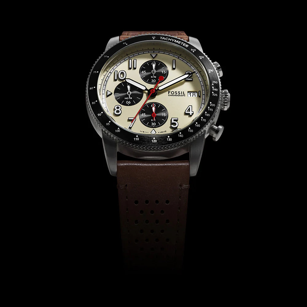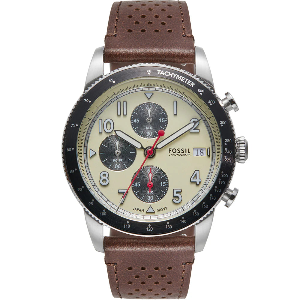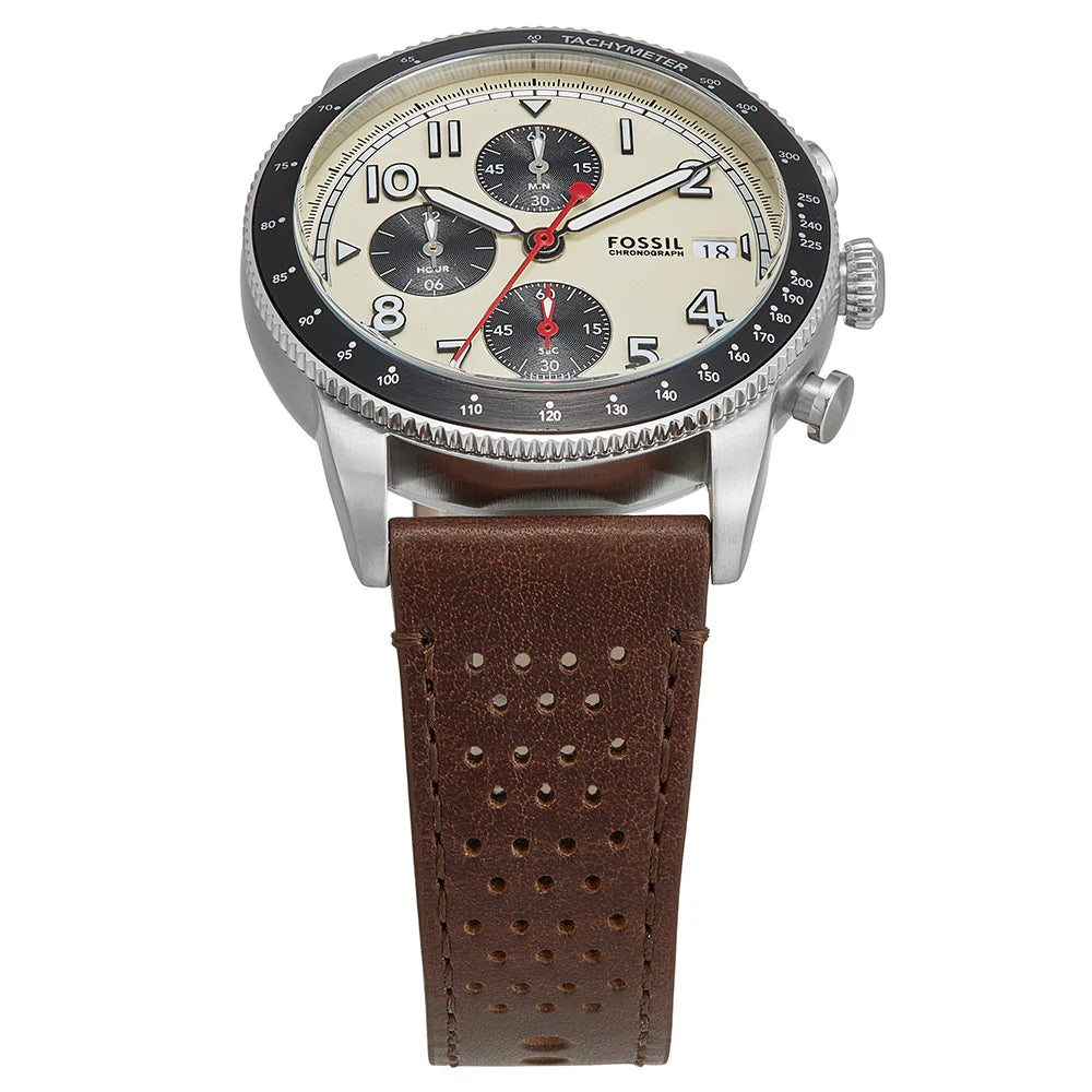 Fossil Sport Tourer Gents Cream Dial Brown Leather Strap Chronograph Watch