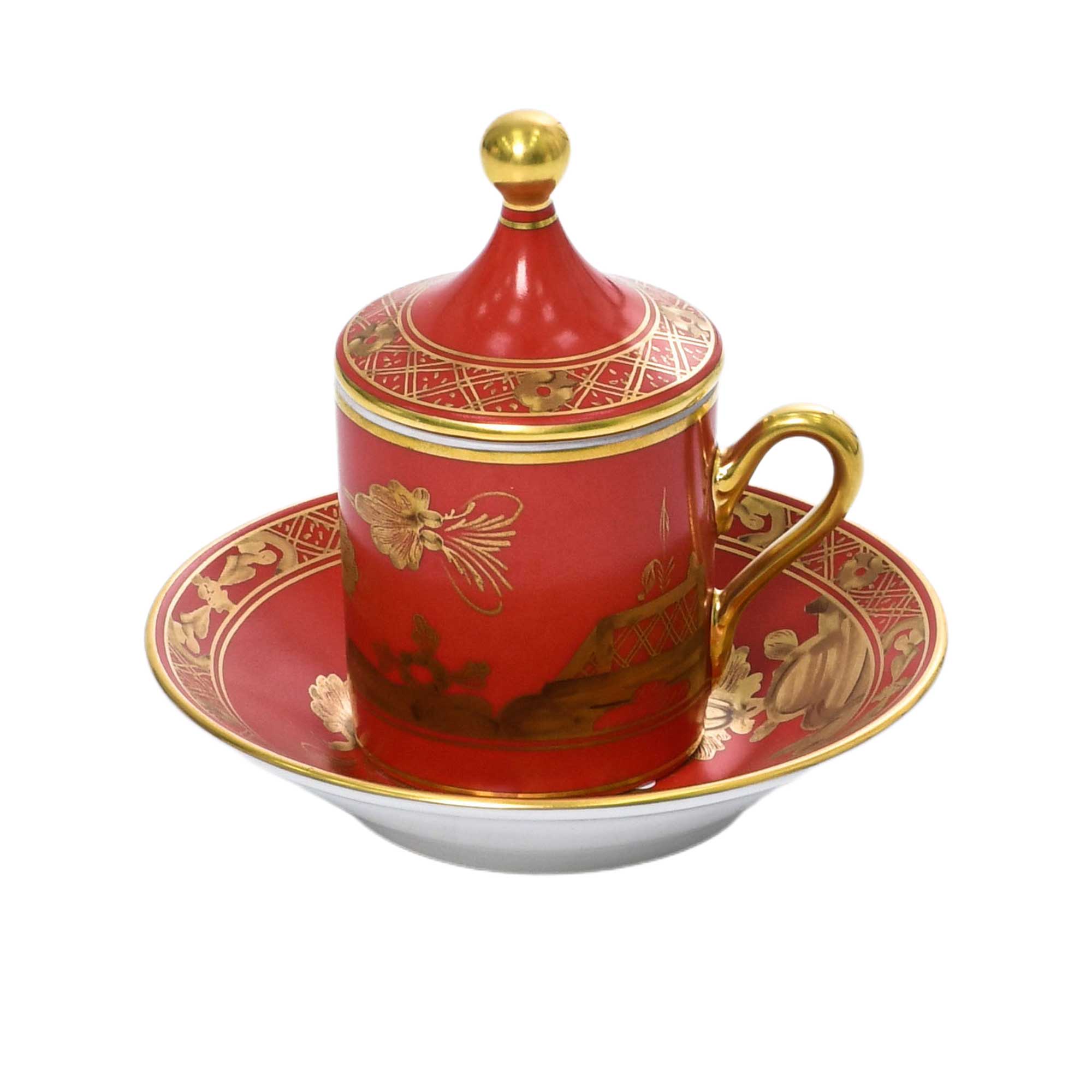 Richard Ginori Oriente Italiano Rubrum Coffee cup with plate and cover set for two Impero