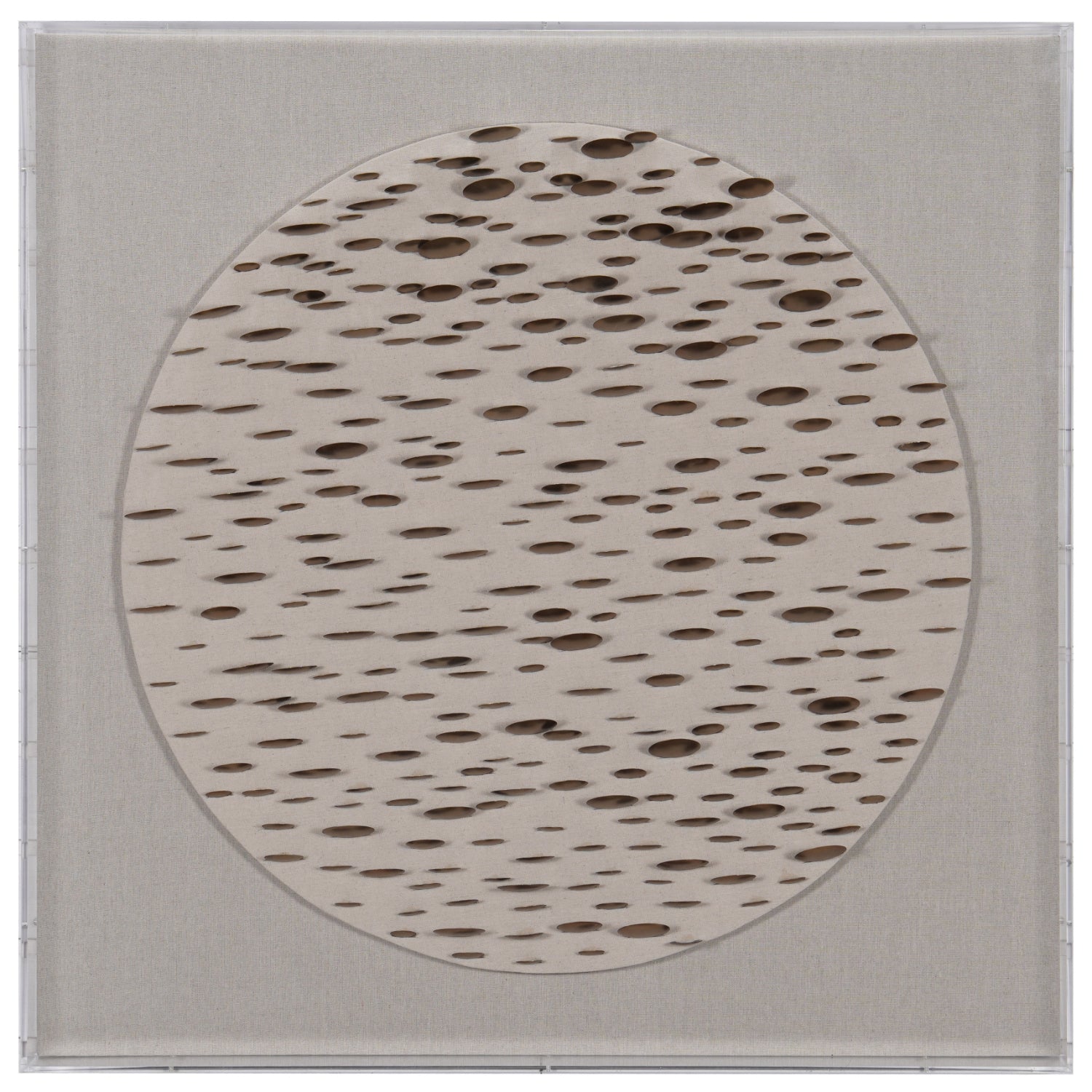 This captivating wall art from MILLION STONE ARTS is a stunning statement piece for any modern or contemporary space. The design features an elliptical field of textured dots in varying sizes and depths, creating a mesmerizing visual effect that evokes a sense of cosmic expanse. The subtle interplay of light and shadow adds depth and dimension to the piece, while the neutral color palette allows it to complement a variety of decor styles.