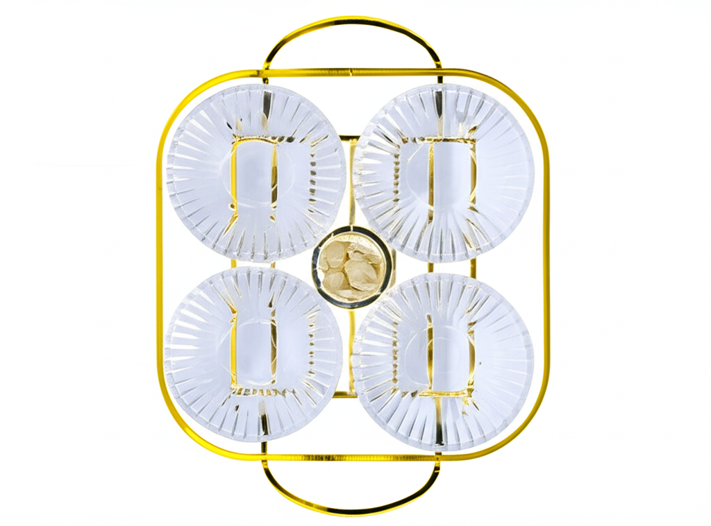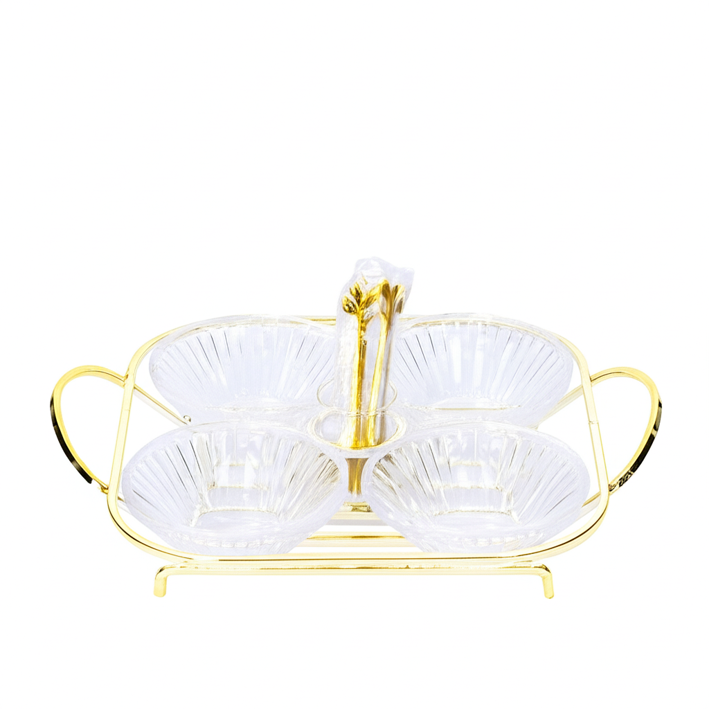 Ele 4PM Elegant Four-Compartment Nuts Stand Serving Set with Utensil Holder (Available in Gold and Silver)