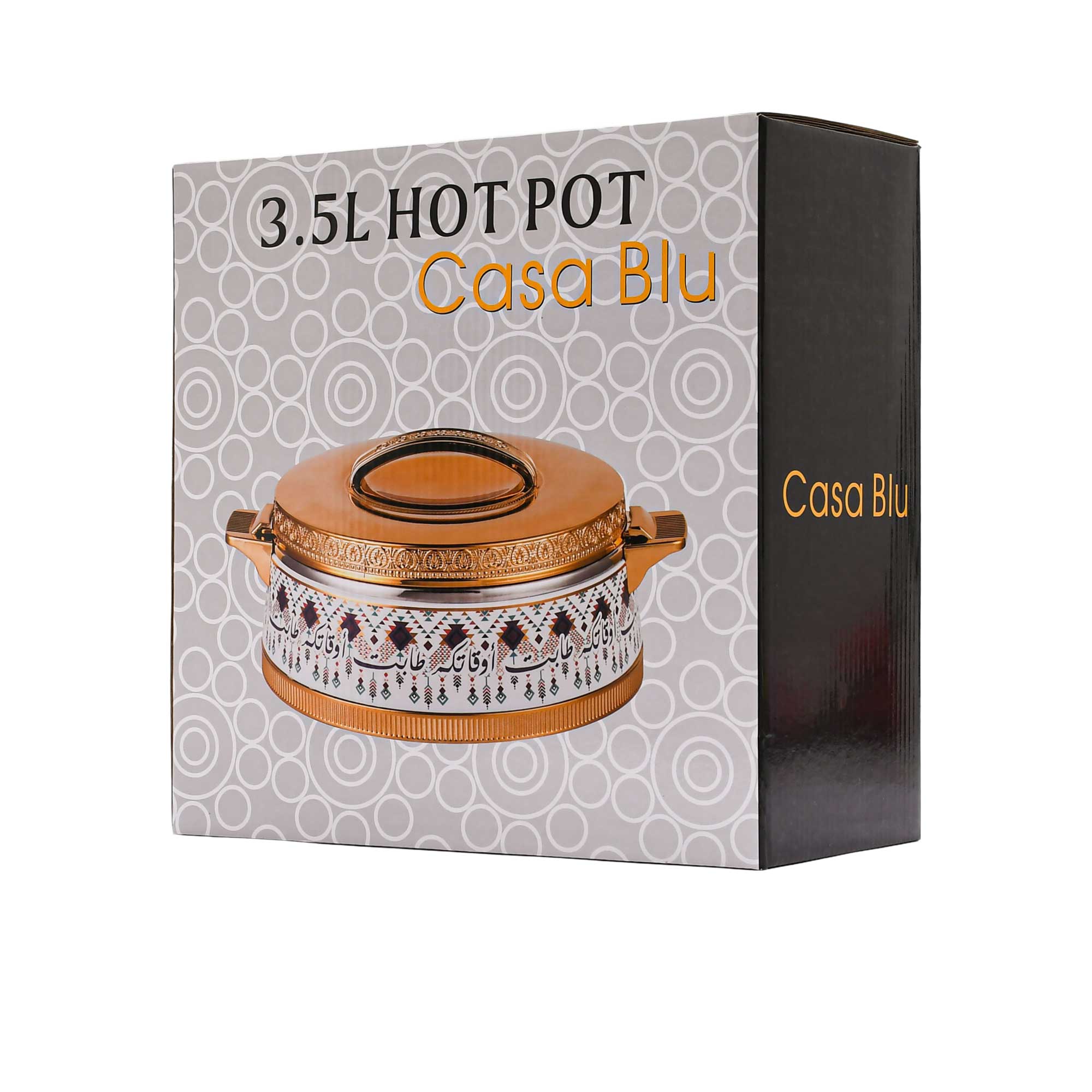 Keep food warm for hours with the Casa Blu 3.5L Insulated Food Warmer. This stylish and functional hot pot features durable metal construction, decorative detailing , and a convenient design for serving and transport. Ideal for parties, buffets, and family gatherings.