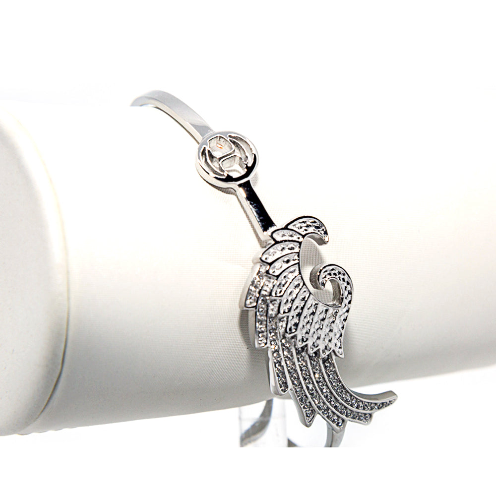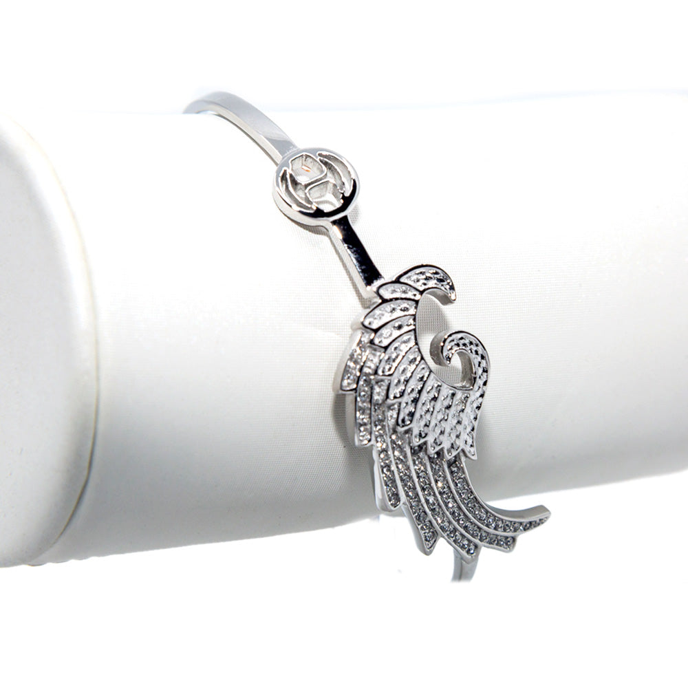 سوار جست كافالي فضي شكل جناح الملاك مفتوح مع حجر وشعار JC