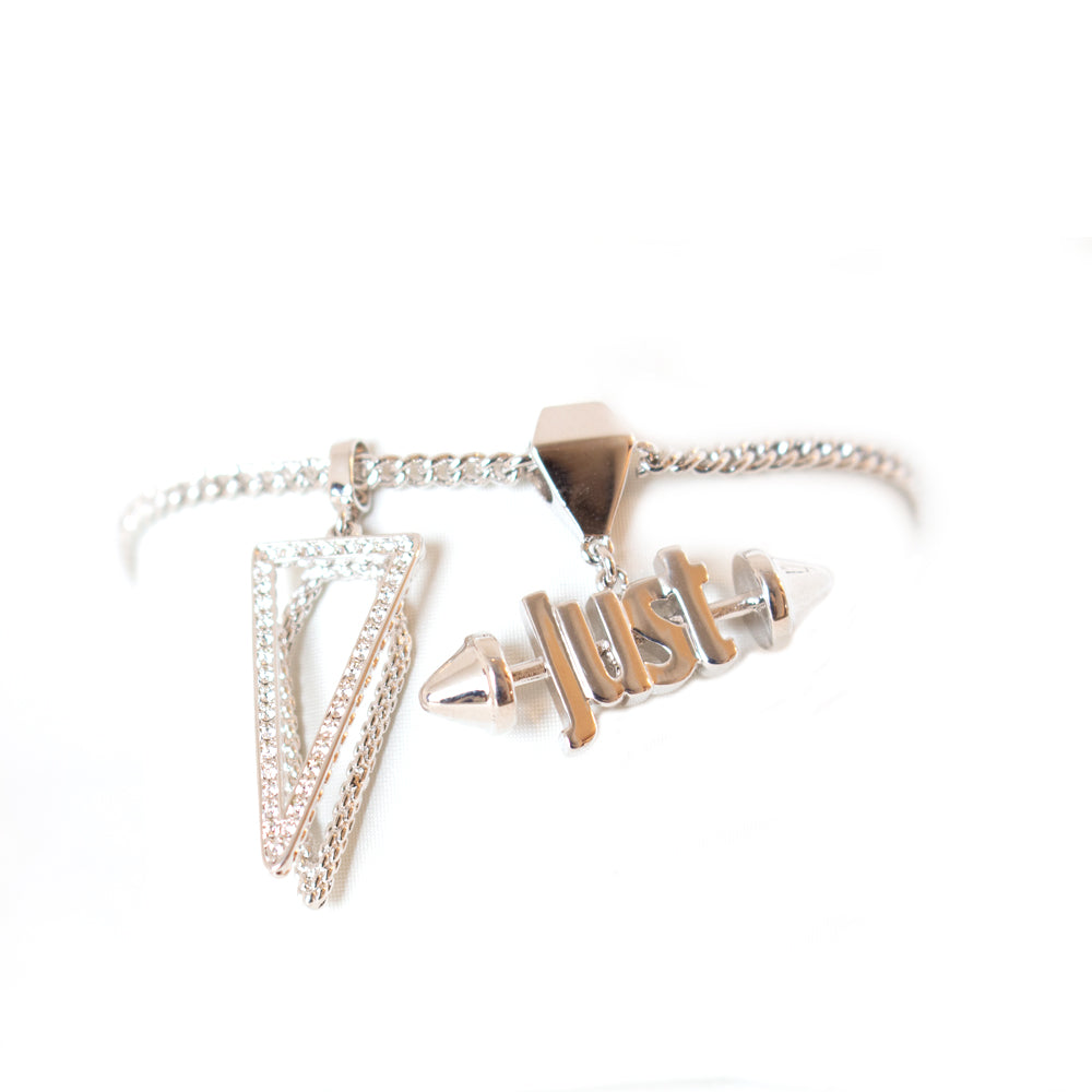 سوار جست كافالي فضي مع تعليقة على شكل مثلث و شعار Just