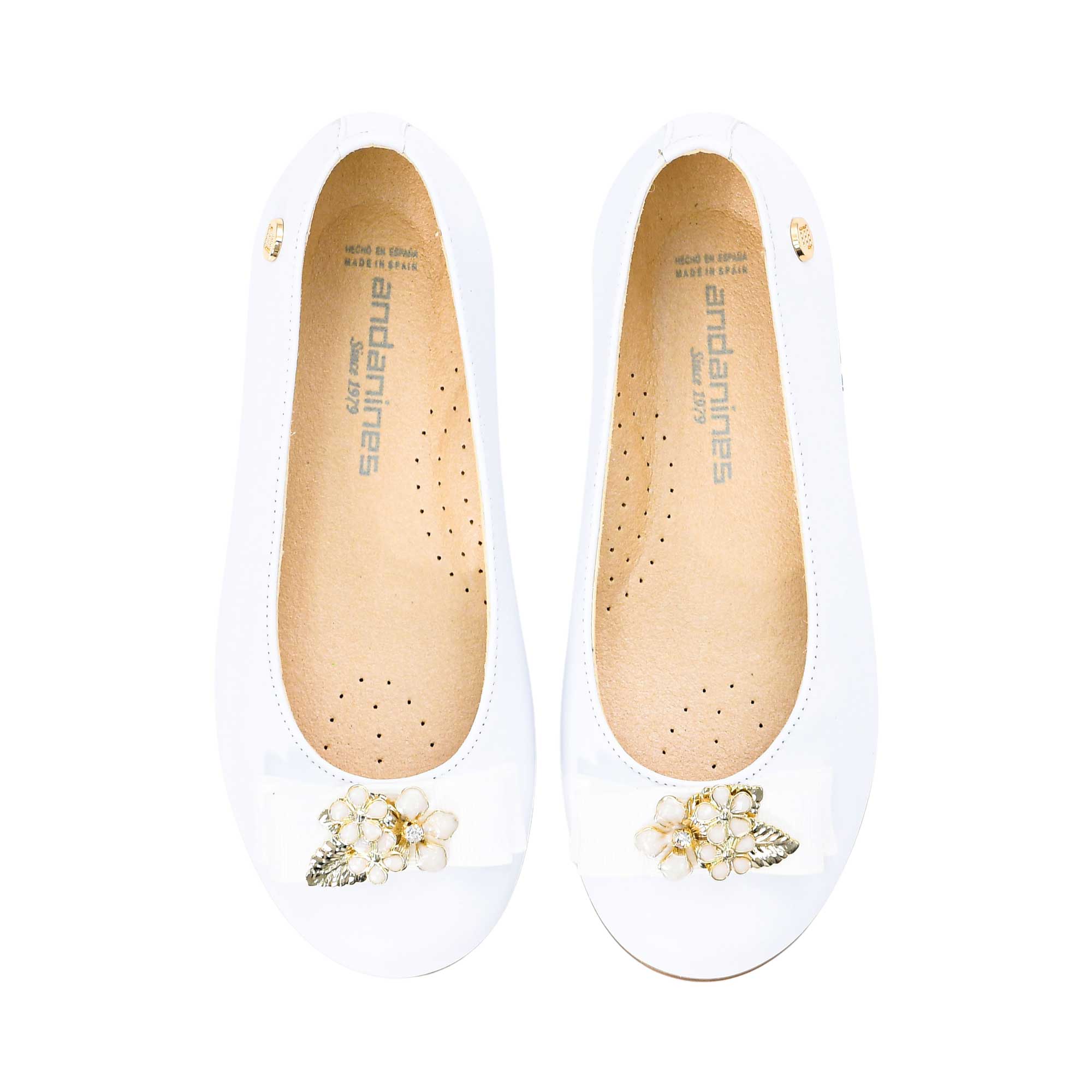 The Andanines Kids Girl's White Ballerina is a charming and comfortable shoe designed for young girls. It features a classic round toe that provides ample space for growing feet, ensuring comfort throughout the day. The ballerina is crafted with a branded leather insole, offering a soft and breathable interior that supports natural foot movement. Additionally, the shoe is equipped with a durable rubber sole, which provides excellent grip and flexibility, making it perfect for active children. Combining style, comfort, and practicality, this ballerina is an ideal choice for both casual wear and special occasions.