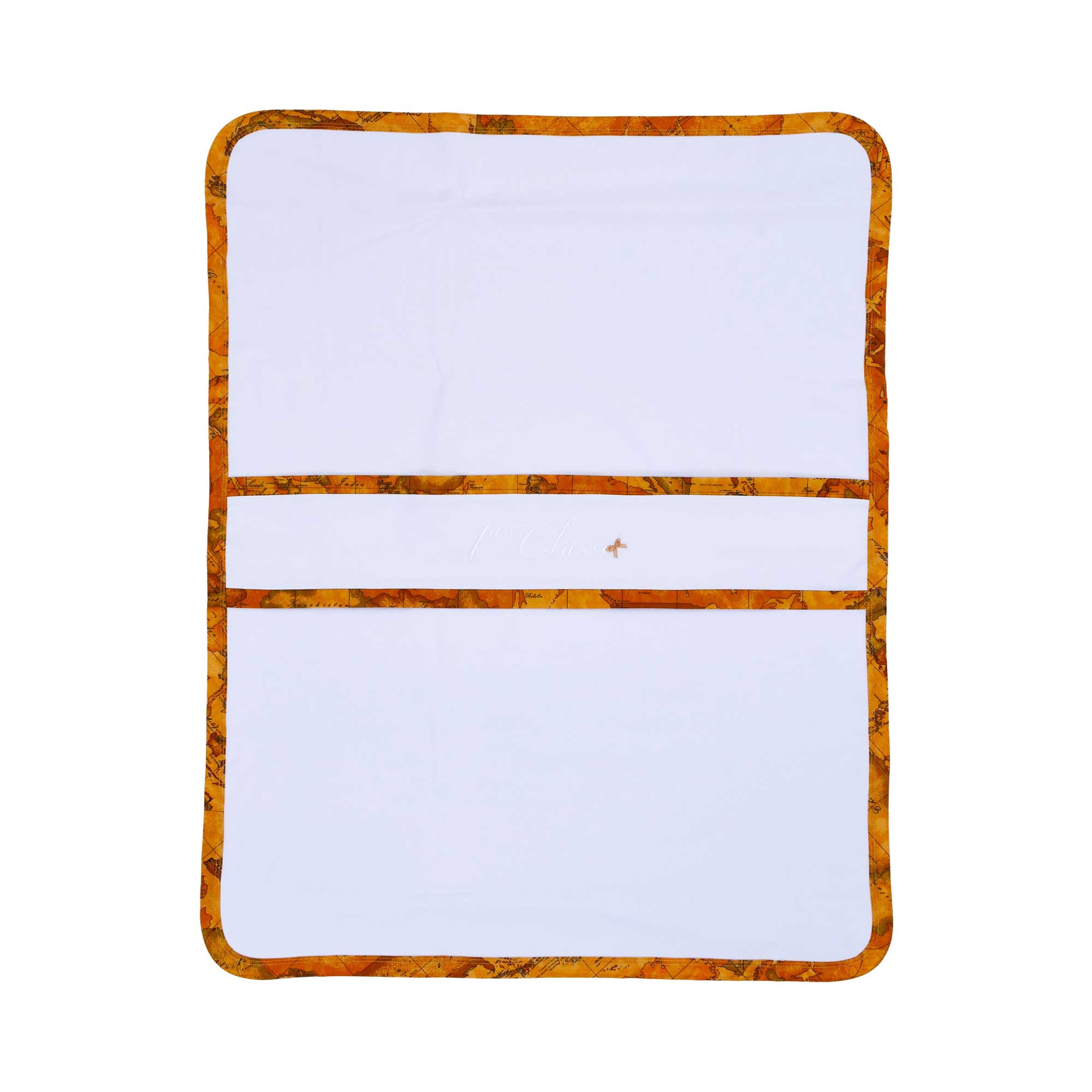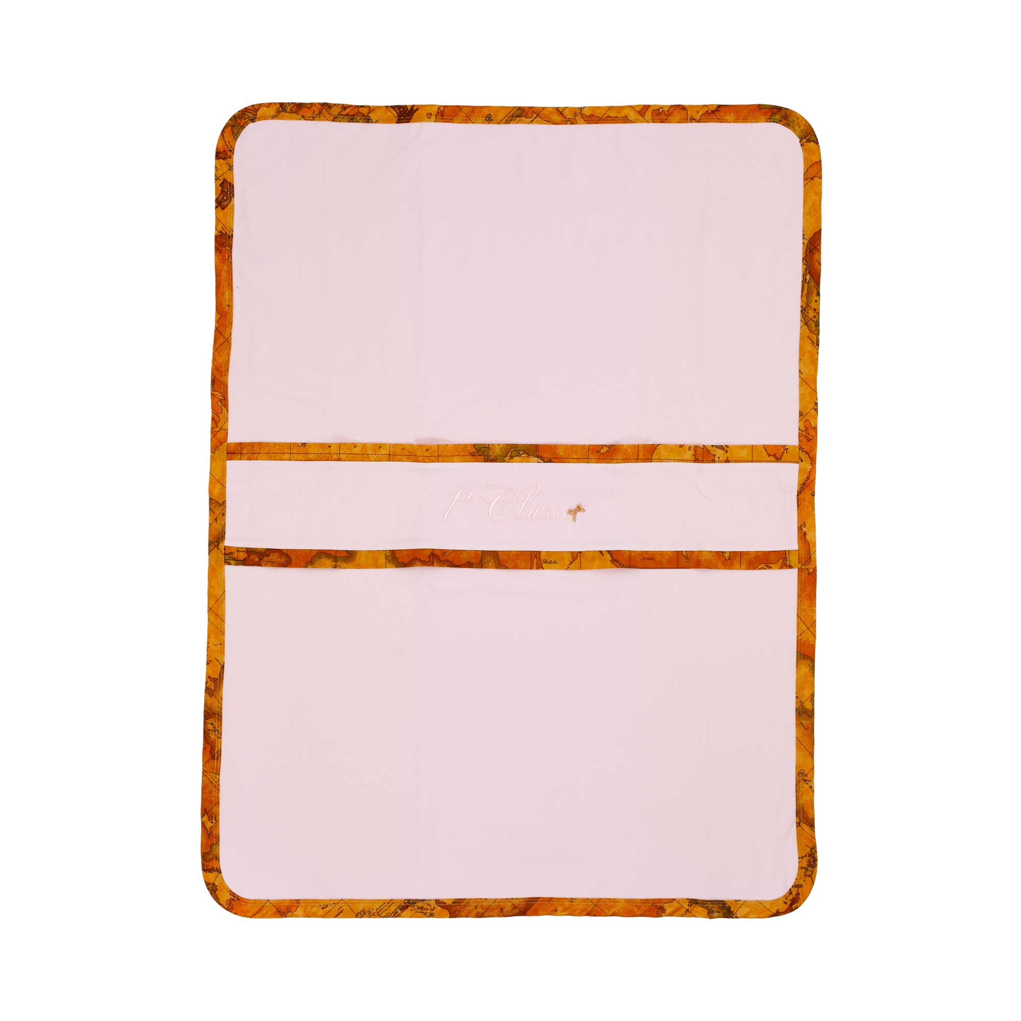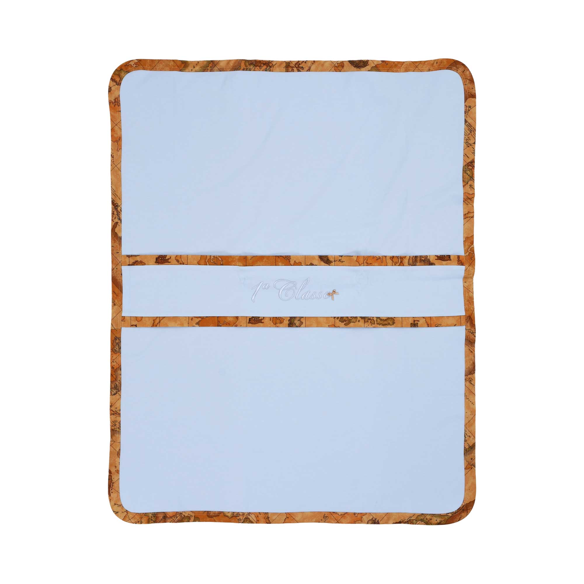 The Alviero Martini Kids New Born Blanket is a luxurious and stylish accessory designed for the comfort of your newborn. Made from 100% soft cotton, it ensures gentle skin contact and coziness. The blanket features an elegant square design, with the iconic 1a Classe embroidered logo prominently displayed at the front, adding a touch of refined Italian branding. Enchanting map print borders complement the overall look, reflecting the brand’s signature travel-inspired aesthetic. Perfect for both practical use and as a sophisticated gift, this blanket combines quality, comfort, and timeless style, making it an ideal addition to any newborn’s essentials.