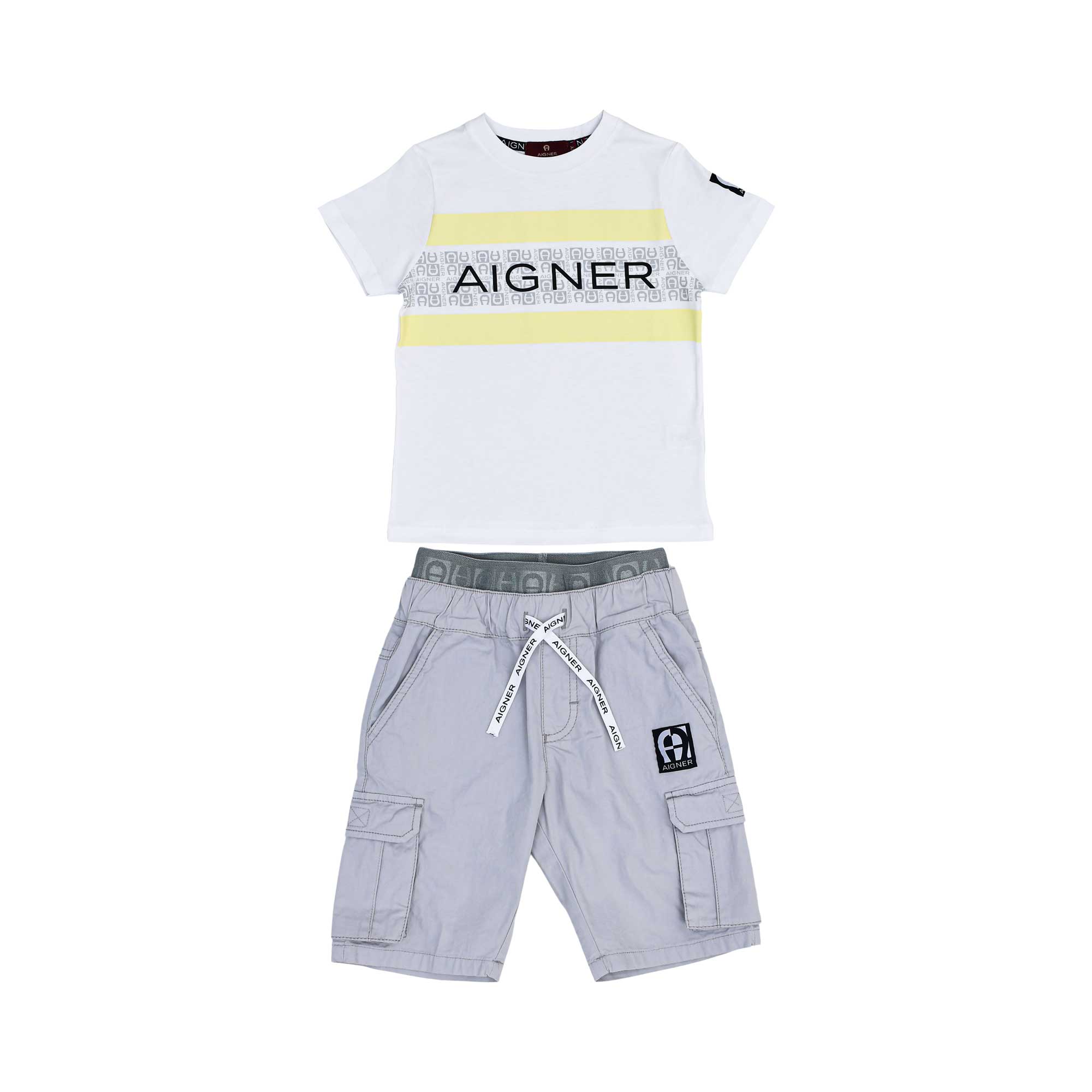 Aigner Kids Boy's White Grey Set of T-Shirt & Bermuda