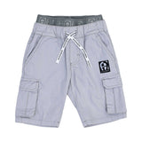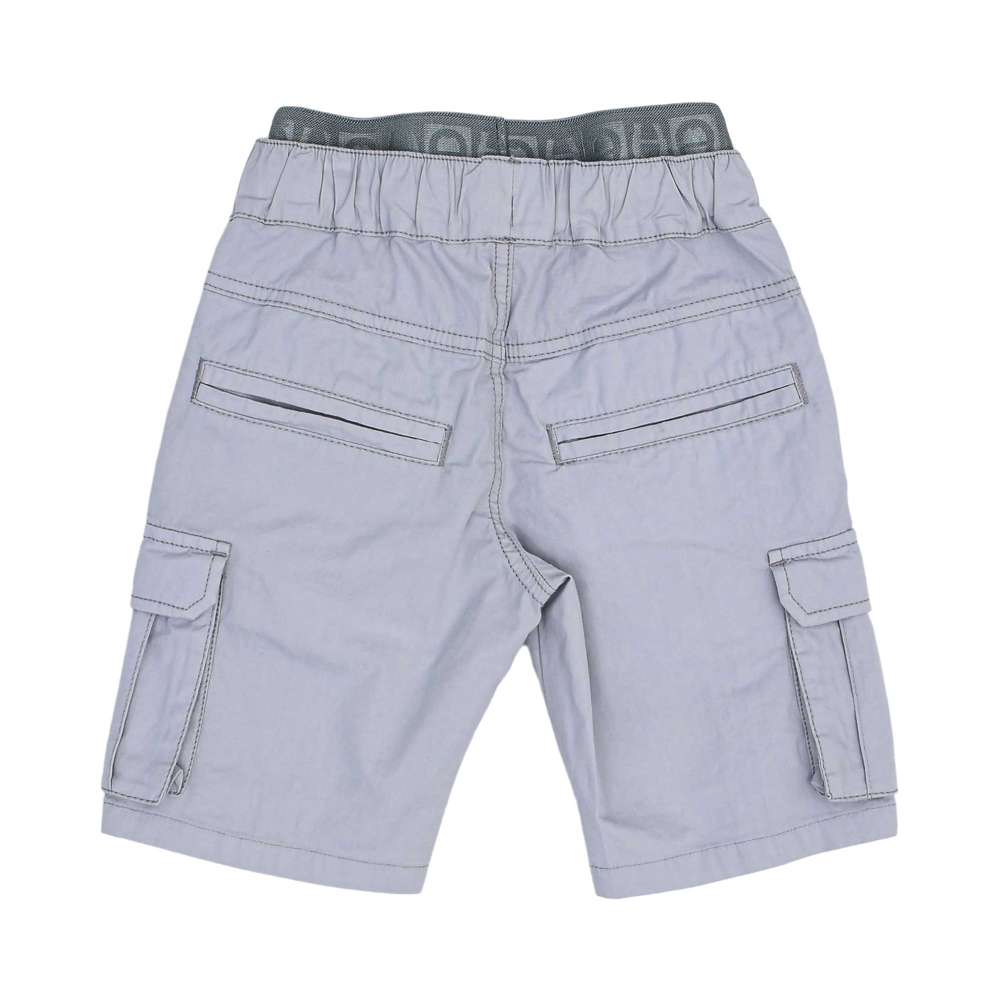 • Grey Bermuda shorts have an elasticated waistband with drawstring for adjustable fit