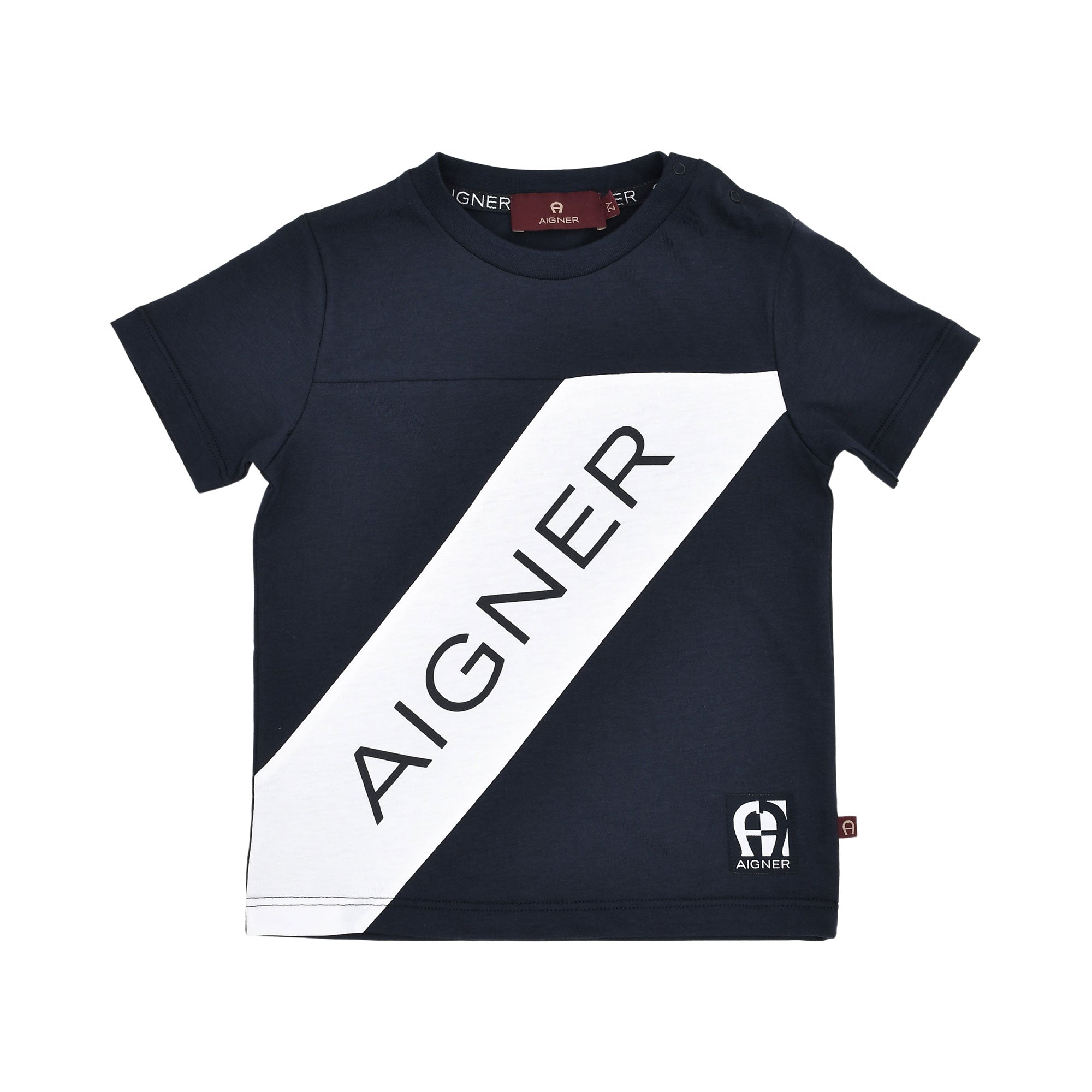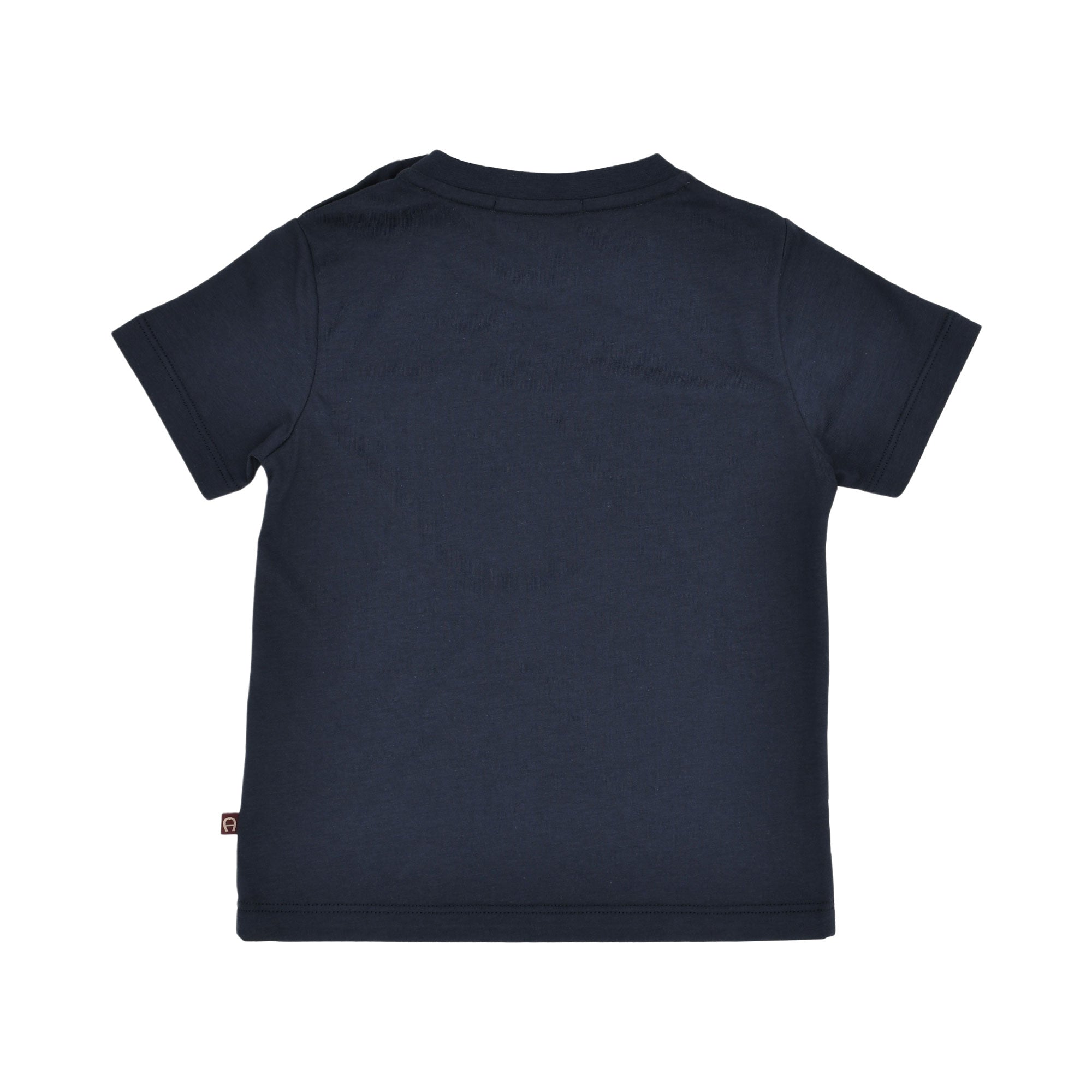 The Aigner Kids Baby Boy's T-Shirt offers both comfort and style for little ones. Crafted from soft, breathable cotton, it features a classic crew neck and short sleeves, ensuring ease of movement and all-day wearability. The front of the t-shirt is adorned with the signature Aigner 'A' horseshoe logo, adding a touch of the brand’s distinctive charm. Designed with practicality in mind, this t-shirt includes side snap fastening at one shoulder, making it easy to dress and undress your baby without fuss. Finished with a straight hem, it combines fashionable details with everyday comfort, making it a versatile addition to any baby boy’s wardrobe.