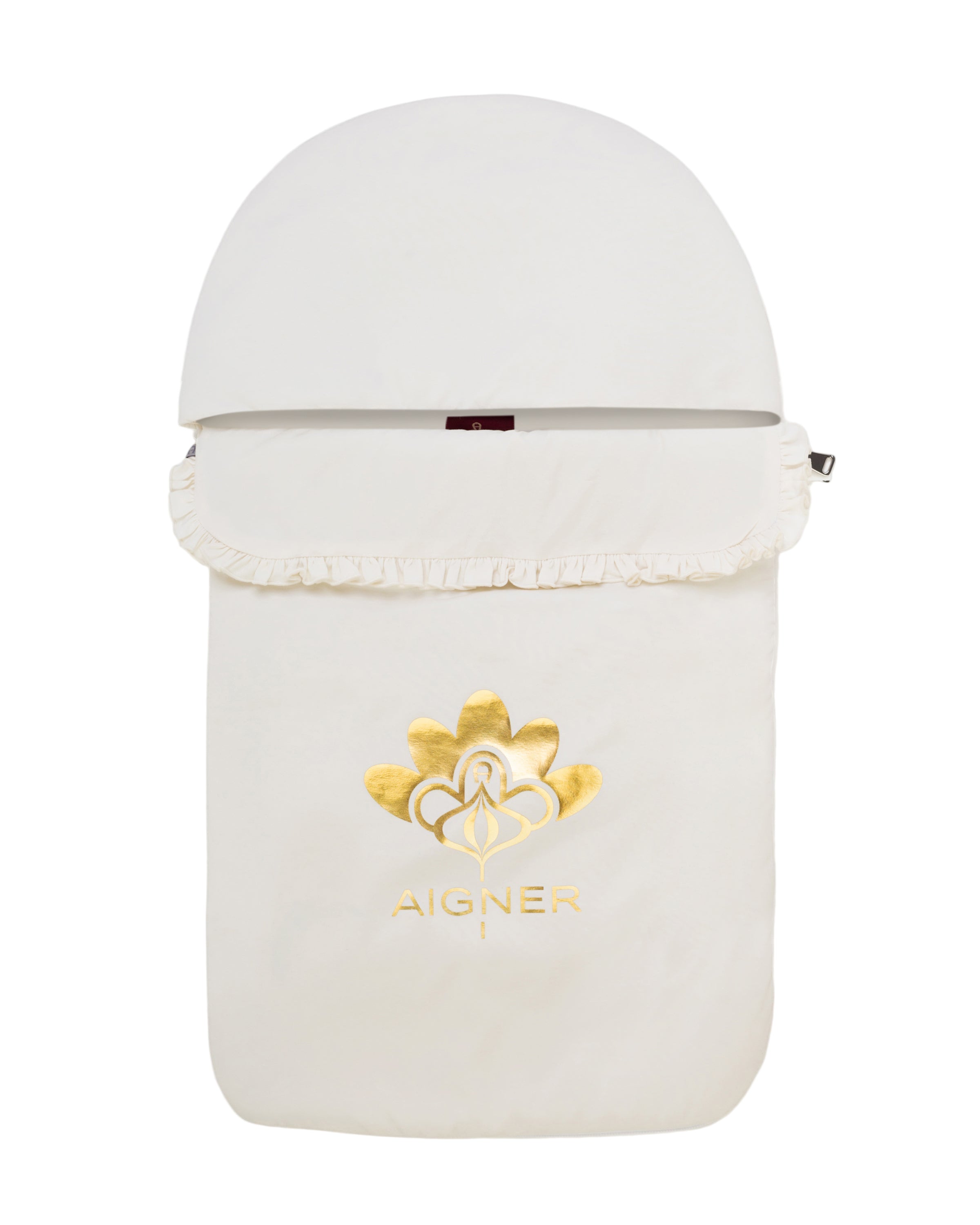 The Aigner Kids New Born Baby Nest is a luxurious and comfortable accessory designed to provide a cozy and secure space for your little one. Featuring a hooded design, it offers added warmth and protection, while the padded construction ensures maximum comfort. The nest is adorned with elegant gold foil handbag and logo prints, adding a sophisticated and stylish touch. Rounded corners enhance safety and provide a snug fit, and the convenient side zip fastening allows for easy access, making it simple to place or remove your baby. Combining practical functionality with chic design, this baby nest is an ideal addition to any nursery.