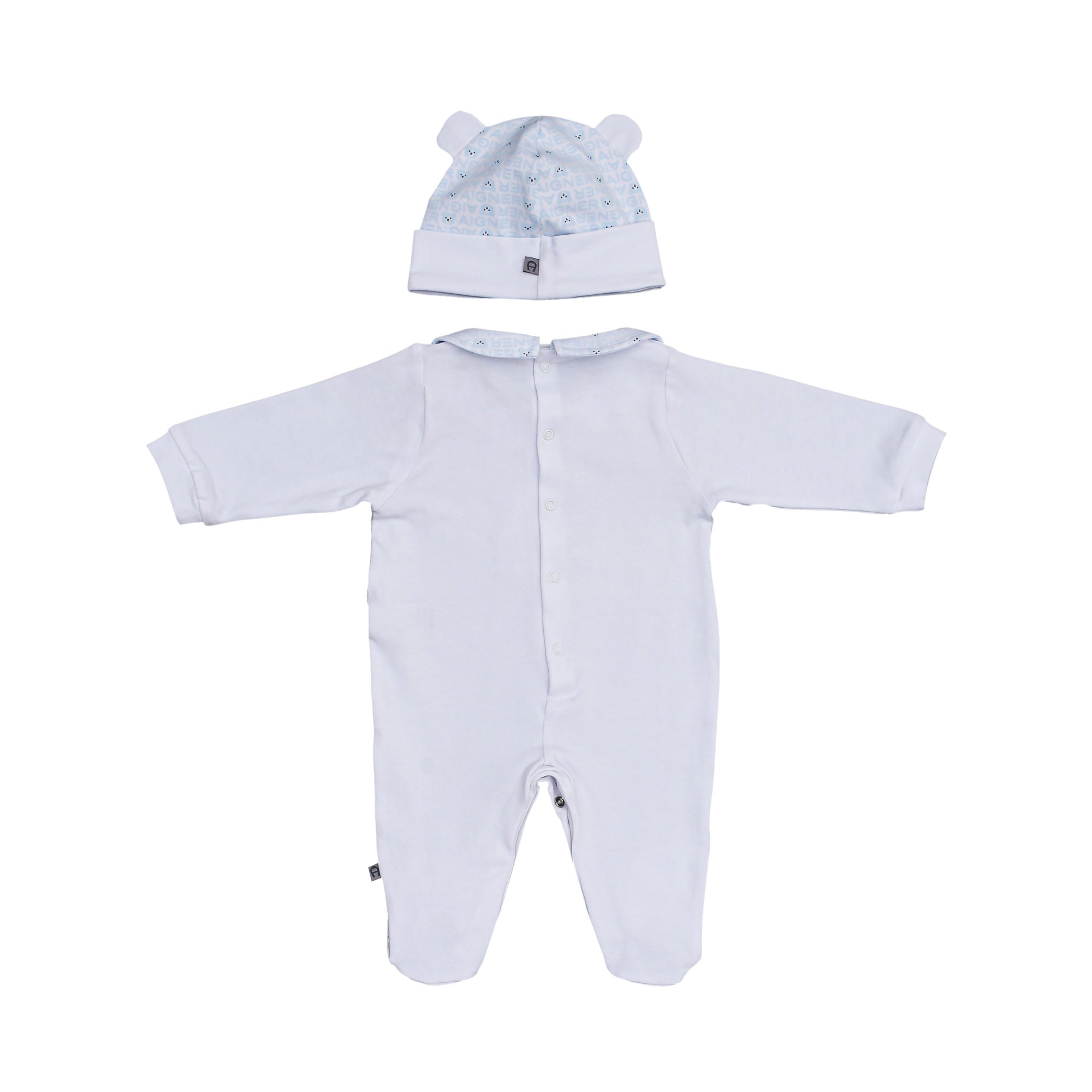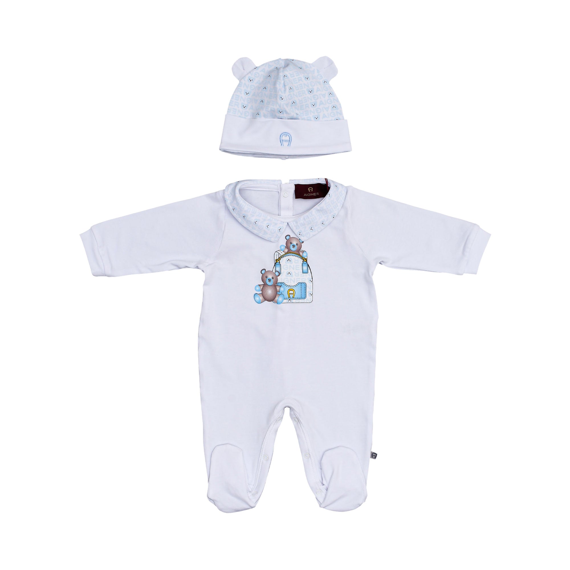 The Aigner Kids Newborn Blue Sleepsuit Set is a charming and cozy outfit designed to provide comfort and style for your little one. Crafted from soft cotton, the sleepsuit features long sleeves and a classic Peter Pan collar neck, adding a delicate and timeless touch to the design. Adorned with the brand logo and signature teddy bear on the front, it showcases Aigner’s iconic playful elegance. Practicality is enhanced with press stud fastenings at the back and between the legs, allowing for easy dressing and quick diaper changes. The covered feet keep your baby warm and comfortable, while the matching hat completes the set, ensuring your newborn stays snug from head to toe. This sleepsuit set beautifully combines adorable design with everyday functionality.