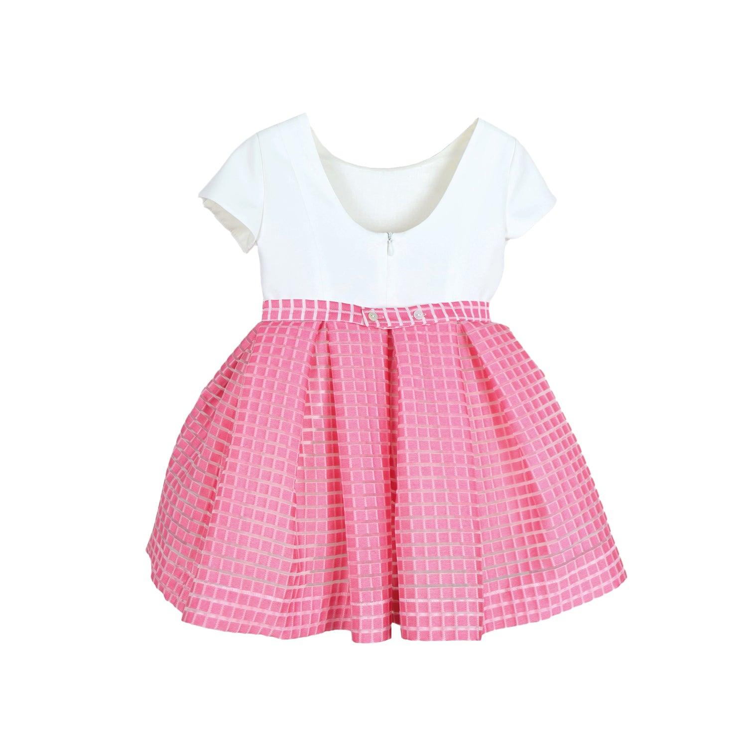 The Amaya Kids Baby Girl's Fuchsia Dress is a beautiful piece that is designed for little fashionistas. It features a vibrant fuchsia color that adds a pop of color to any outfit. The dress has a unique square effect skirt which gives it a fun and playful look. It is perfect for special occasions such as birthday parties, family gatherings, or even photoshoots. The round neck and short sleeves make it comfortable for kids to wear on warmer days. The back zip fastening ensures easy dressing and the bow detail on the front adds a cute and girly touch. This dress is made with high-quality materials and is designed to be durable and easy to maintain. It is a stylish and practical choice for any little girl's wardrobe. SPECIFICATIONS