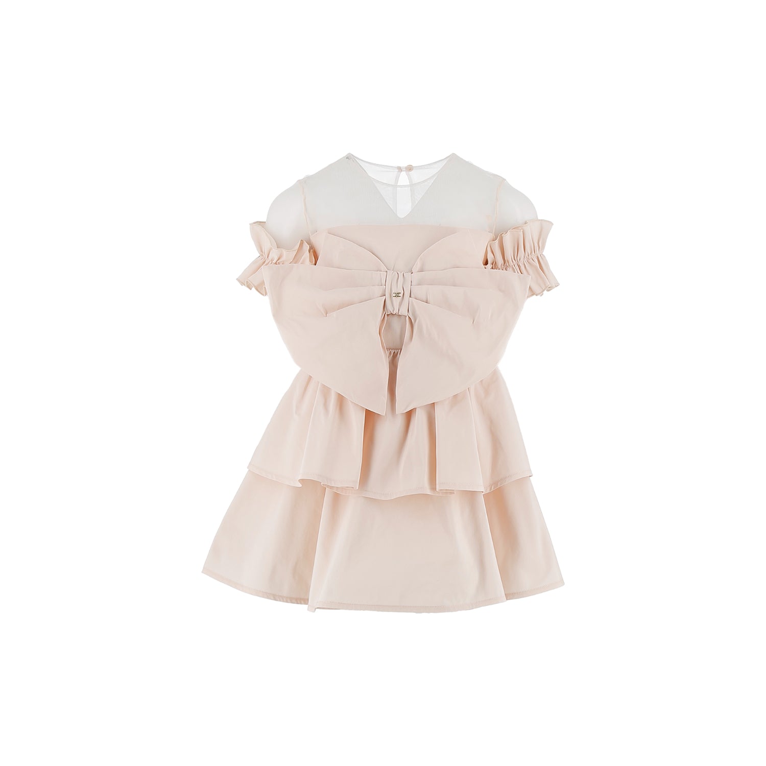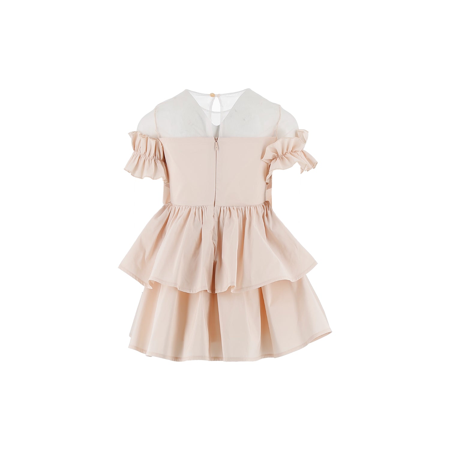 The Elisabetta Franchi Kids Girl's Pink Dress from the La mia Bambina collection is a charming and elegant piece crafted from luxurious ottoman fabric. This delightful dress features a sweet succession of ruffles that add texture and movement, while the gathered sleeves enhance its delicate and refined look. A standout detail is the maxi bow adorning the chest, lending a playful yet sophisticated touch. Adding to its graceful design, the dress includes a transparent tulle insert on the shoulders, creating a subtle contrast and a light, airy feel. Perfect for important events, this exquisite dress promises to make your little lady stand out with its timeless elegance and thoughtful craftsmanship. The invisible zip on the back ensures a seamless fit and ease of wear.