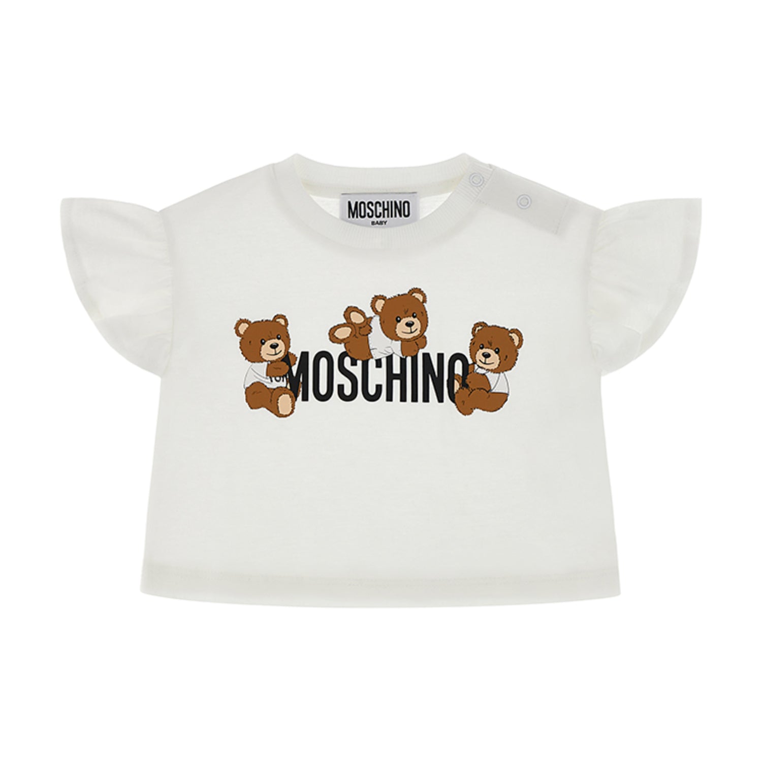 | The Moschino Kids Baby Girl's T-Shirt is a charming and comfortable piece that captures the playful spirit of the iconic brand. Crafted from soft, breathable cotton, this T-shirt ensures all-day comfort for little ones. It features a classic round neck with a ribbed finish, adding a subtle touch of texture and durability. Adorable short ruffle sleeves lend a sweet and stylish flair, while the iconic Moschino Teddy Bear print on the front brings a sense of fun and instant brand recognition. For added ease, the T-shirt includes a practical popper fastening at one shoulder, making dressing quick and hassle-free. Finished with a straight hem, this delightful piece effortlessly combines practicality, comfort, and signature designer style, making it a delightful addition to any baby girl's wardrobe. SPECIFICATIONS • Brand: Moschino Kids • Gender: Girl • Crafted from soft, breathable cotton for maximum comfort • Classic round neck with ribbed finish for added texture and durability • Adorable short ruffle sleeves provide a sweet, stylish touch • Features the iconic Moschino Teddy Bear print on the front for instant brand recognition • Practical popper fastening at one shoulder for quick and easy dressing • Finished with a straight hem for a polished look • Effortlessly combines practicality, comfort, and designer style • Captures the playful spirit of the Moschino brand • Perfect addition to any baby girl's wardrobe • Fabric: 100% cotton (soft jersey) • Washing Instructions: Machine wash 30*C • Do not bleach • Do not tumble dry • Do not dry clean About Brand Moschino is an iconic Italian fashion brand known for its bold, playful, and often irreverent designs. Founded in 1983 by Franco Moschino, the label is famous for its creative use of color, whimsical prints, and distinctive motifs, such as the Moschino Teddy Bear. The brand offers clothing, accessories, and fragrances for both adults and children, and is celebrated for its unique blend of high fashion and pop culture influences. Moschino stands out as a symbol of fun, creativity, and luxury in the world of fashion. |