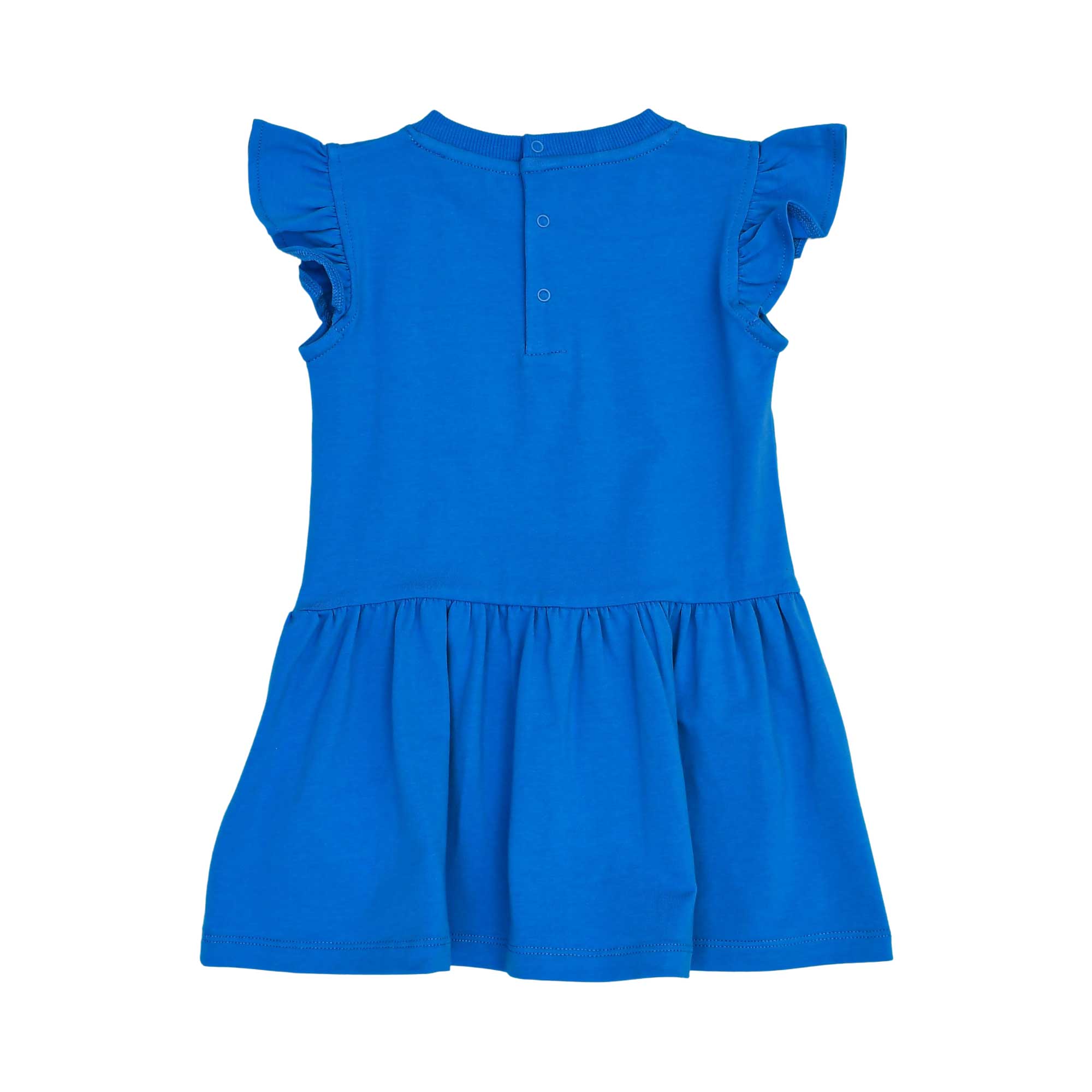 The Moschino Kids Baby Girl's Ocean Blue Dress is a delightful blend of comfort and playful designer style, making it a charming addition to any little girl’s wardrobe. Crafted from soft, breathable cotton, this dress features a classic round neck and a convenient rear press-stud fastening for easy dressing. The standout detail is Moschino’s signature Teddy Bear motif on the front, bringing a whimsical touch that is instantly recognizable. The dress is further enhanced by a sweet ruffled trim and a gathered skirt, creating a silhouette that is both cute and comfortable for all-day wear. With its vibrant ocean blue hue and thoughtful detailing, this dress perfectly captures the spirit of Moschino’s fun and youthful aesthetic.