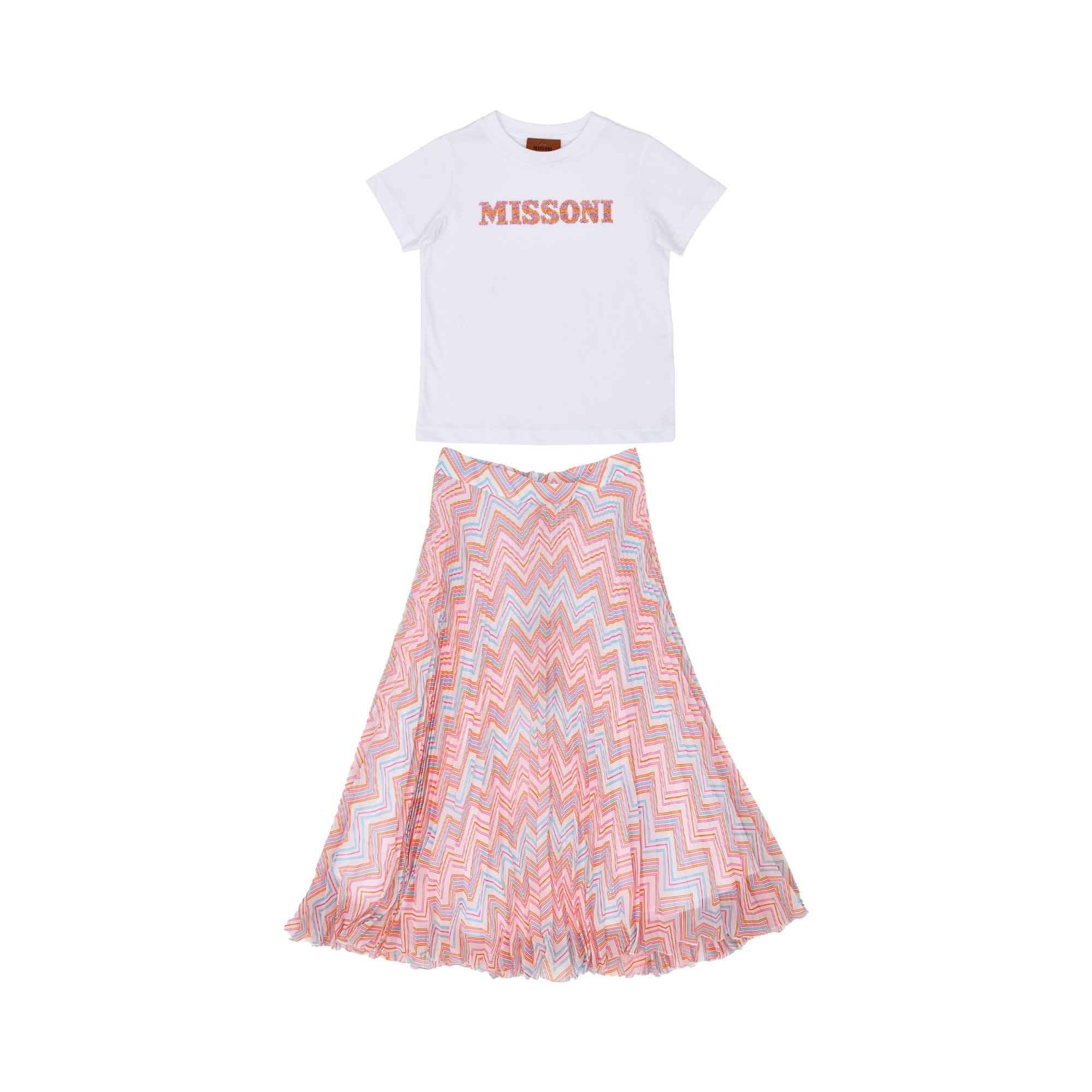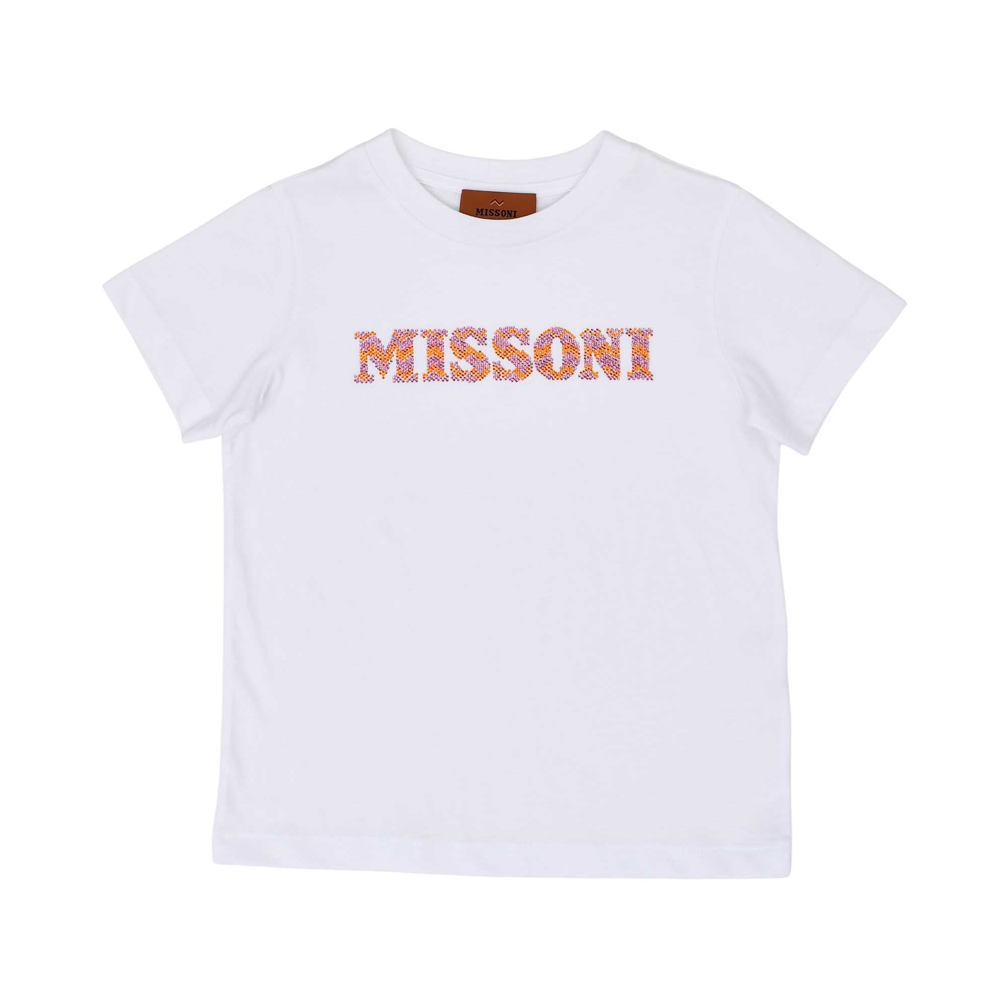 • Includes a white short-sleeve T-shirt with “MISSONI” printed in multicolored, patterned letters