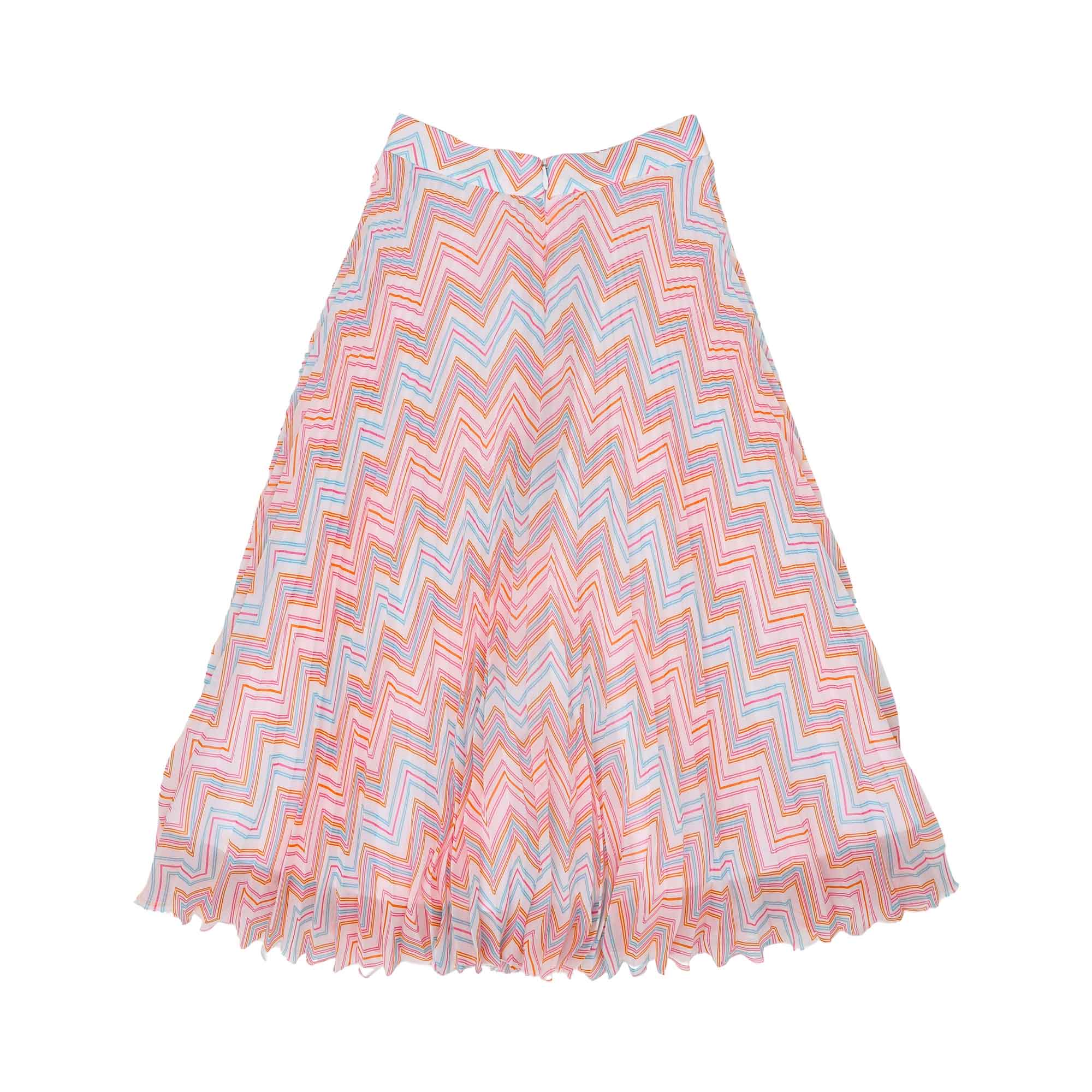 • A-line pleated skirt featuring Missoni’s signature chevron design