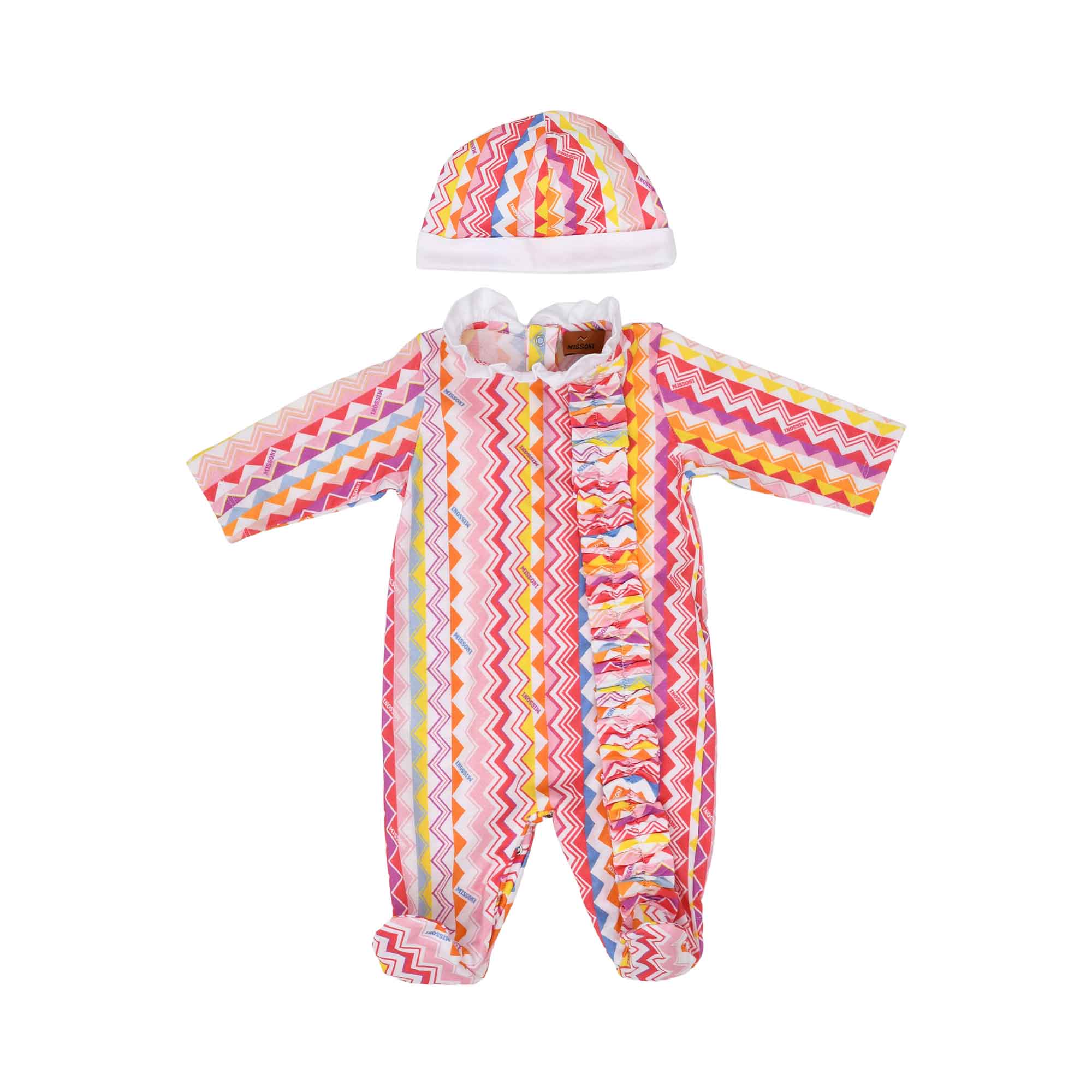 Missoni Kids Newborn Girl's Multicolor Chevron Sleep Suit and Hat Set