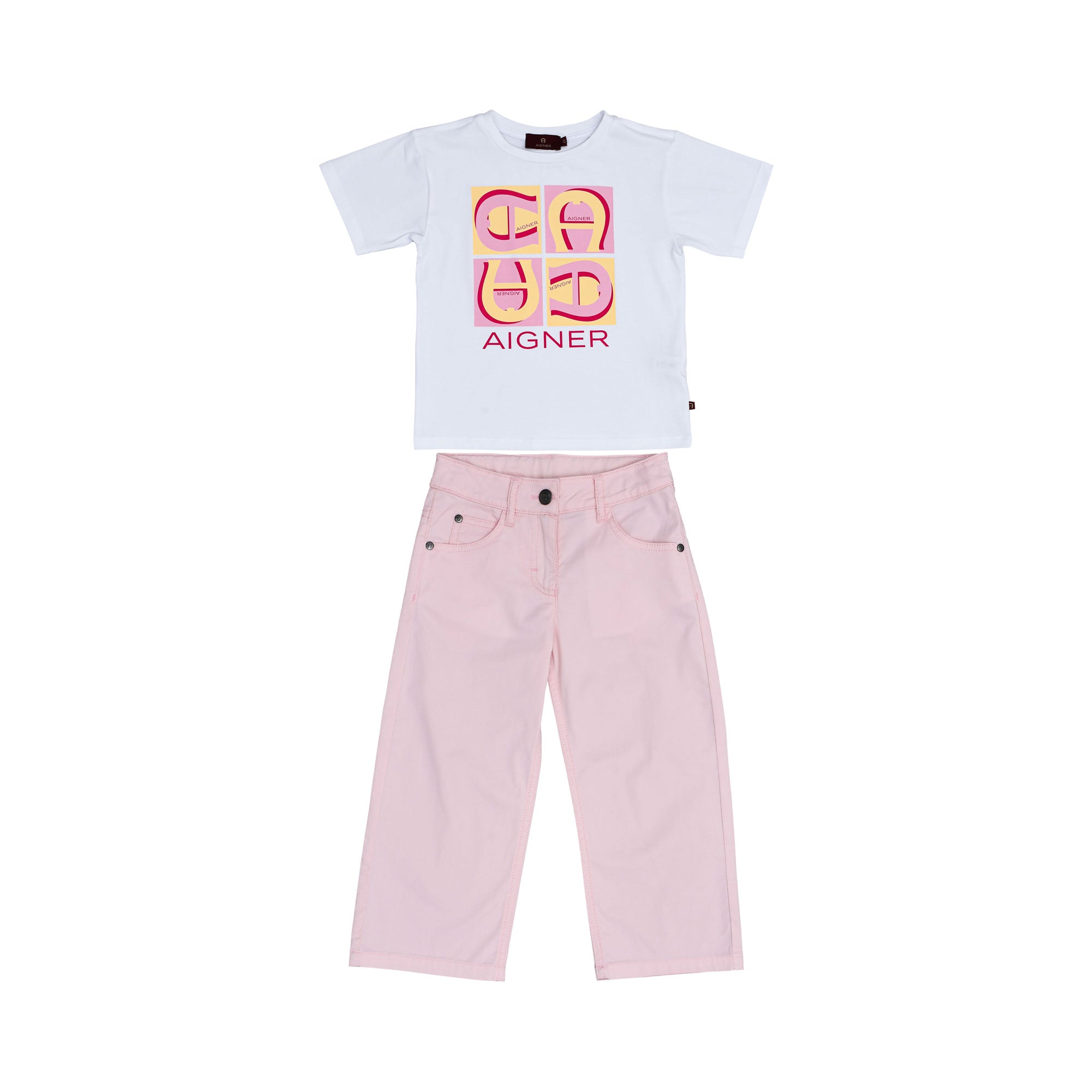 Aigner Kids Girl's White Pink Set T-Shirt & Trouser