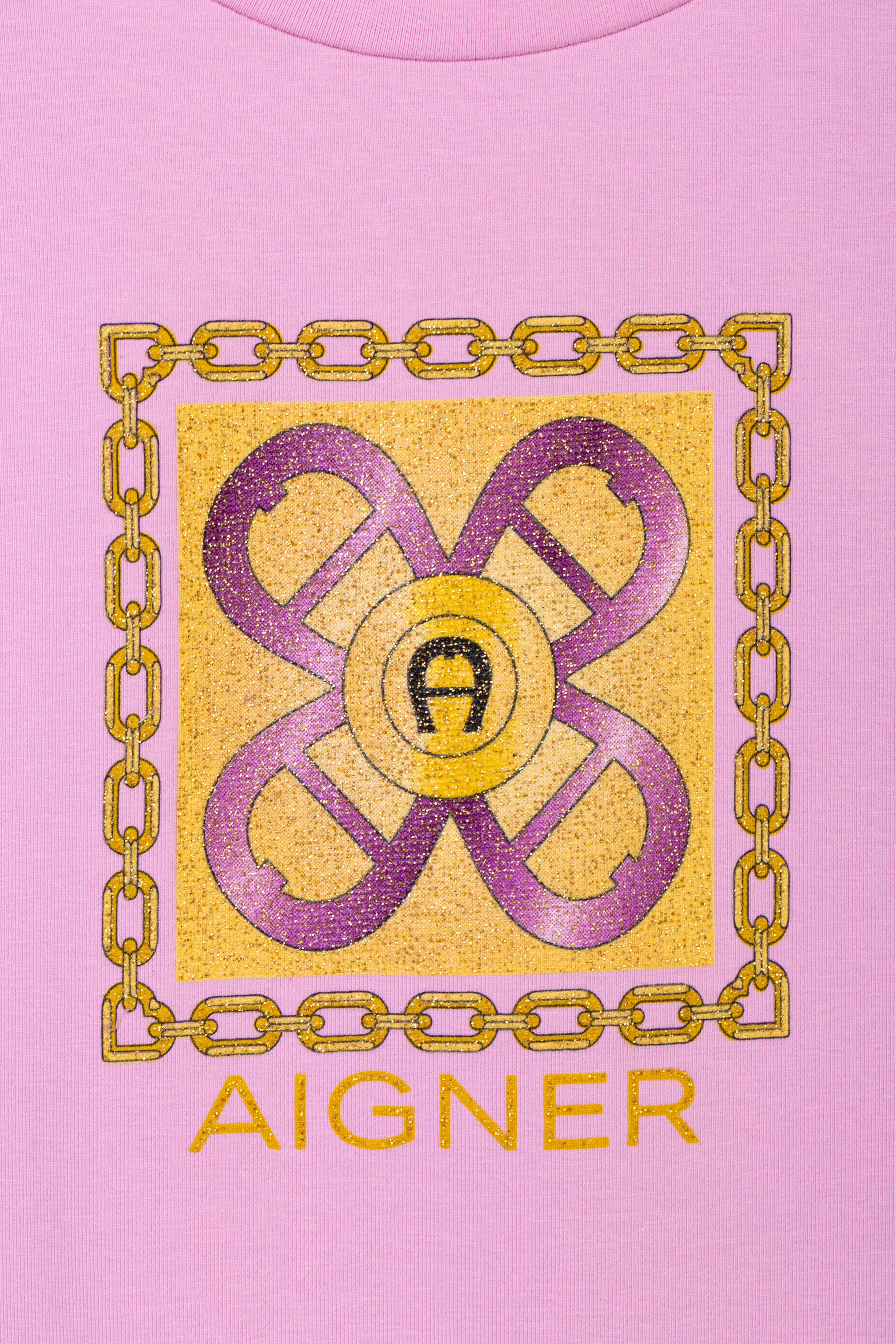 The Aigner Kids Girl's Pink Dress is a charming and stylish piece for young girls. It features a graphic logo print on the front, adding a playful touch to the design. The dress also has short ruffle sleeves, creating a feminine and trendy look. Made of cotton, it is comfortable to wear and perfect for warmer weather. The dress also has a round neck, making it easy to slip on and off. With its cute design and cozy fabric, this dress is a great addition to any little girl's wardrobe.