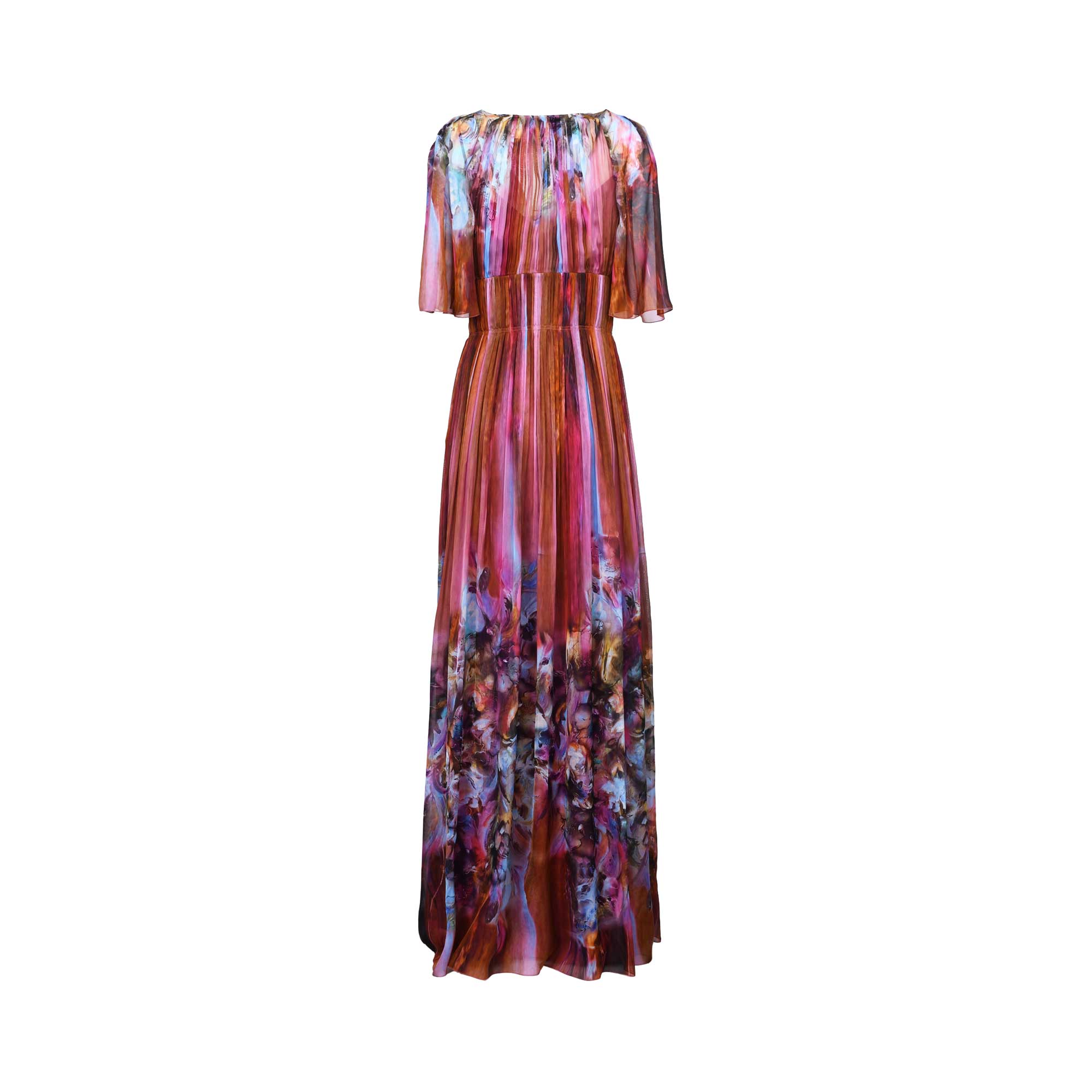 The Alberta Ferretti Women's Fantasy Print Pink Long Dress is a captivating and elegant piece that effortlessly combines playful femininity with sophisticated design. Featuring an all-over abstract print in soft pink hues, the dress showcases exquisite craftsmanship through its delicate pleating that adds texture and movement to the fabric. The floaty skirt enhances the dress’s ethereal appeal, creating a graceful silhouette that flows beautifully with every step. Fully lined for comfort and coverage, this long dress is perfect for making a statement at special occasions or upscale events. With its blend of artistic print and refined detailing, it exemplifies Alberta Ferretti’s signature style of timeless elegance fused with modern flair.