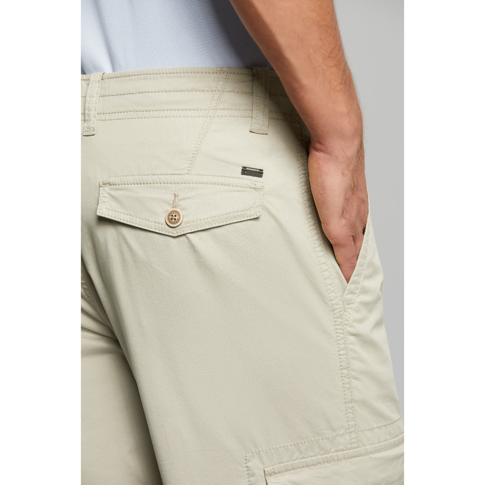 The Bugatti Men's Bermuda Short is a stylish and comfortable clothing option for men. It features a normal rise, allowing it to sit comfortably at the waist. The shorts are fastened with a concealed fly, giving it a sleek and clean look. The shorts are designed with practicality in mind, as they come with pockets that are both functional and fashionable. It has a back pocket for storing small items, two cargo pockets for larger items, and two side pockets for easy access to essentials. The overall design of the Bermuda Short is plain, making it a versatile piece of clothing that can be easily paired with any top. It is perfect for a casual day out or can be dressed up for a more formal occasion. The Bugatti Men's Bermuda Short offers a balance of comfort, functionality, and style, making it a must-have in any wardrobe.