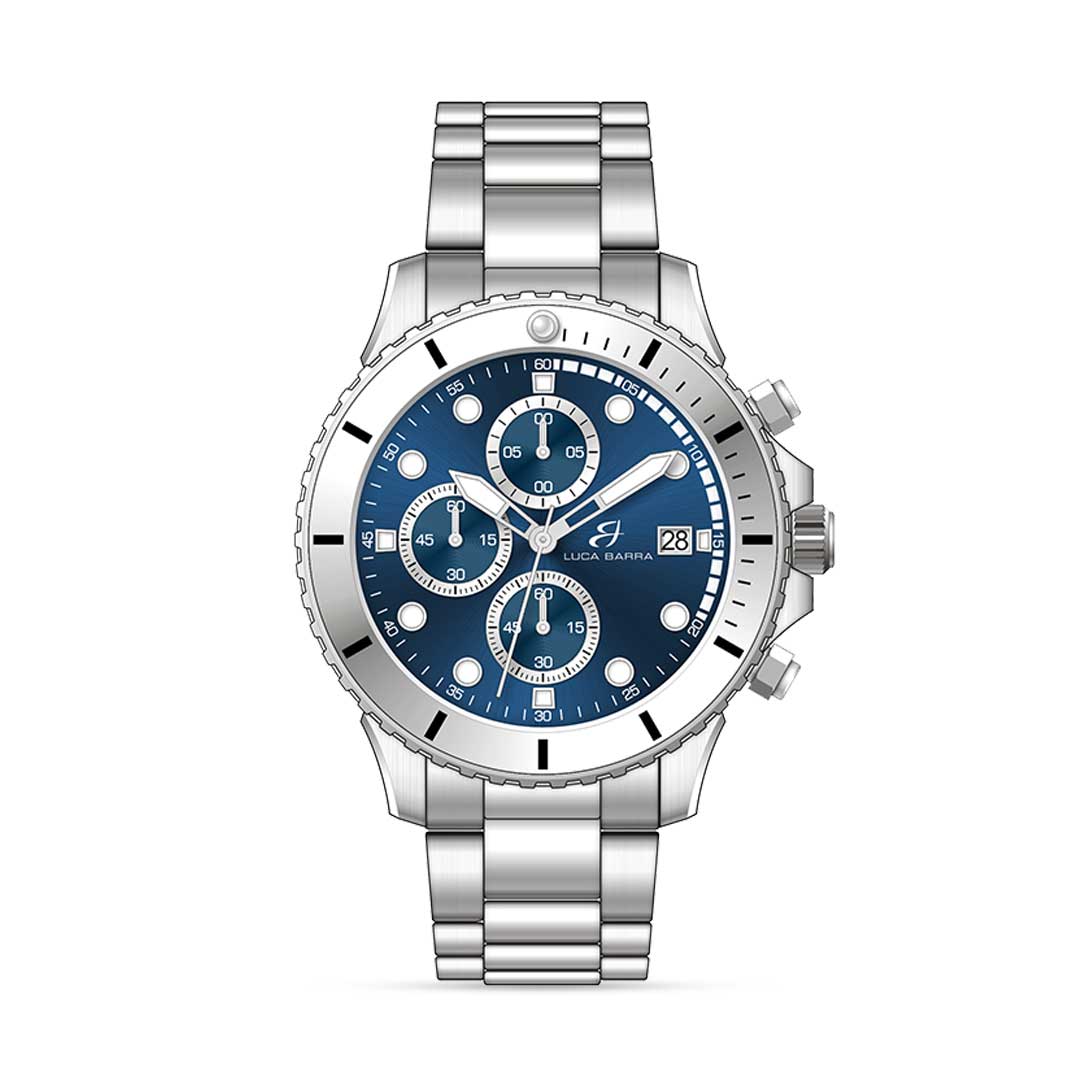 Men’s Stainless Steel Watch with Blue Dial – Case Diameter: 42.5 mm – Seiko VD57 Movement – 5 ATM Water Resistance