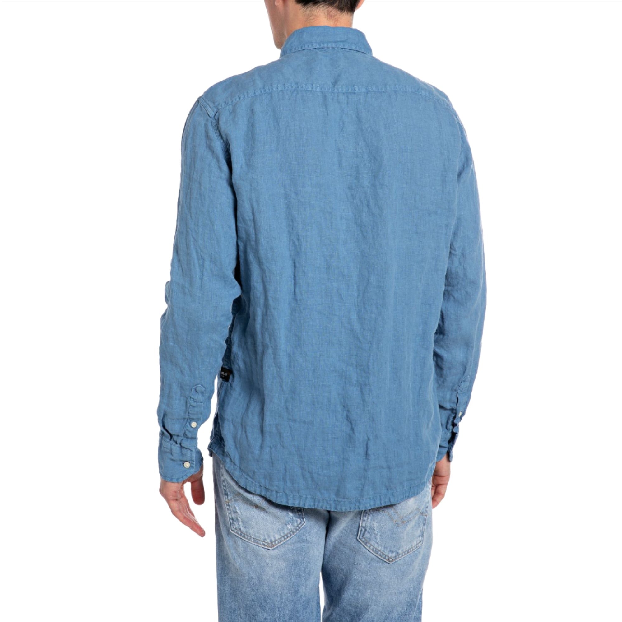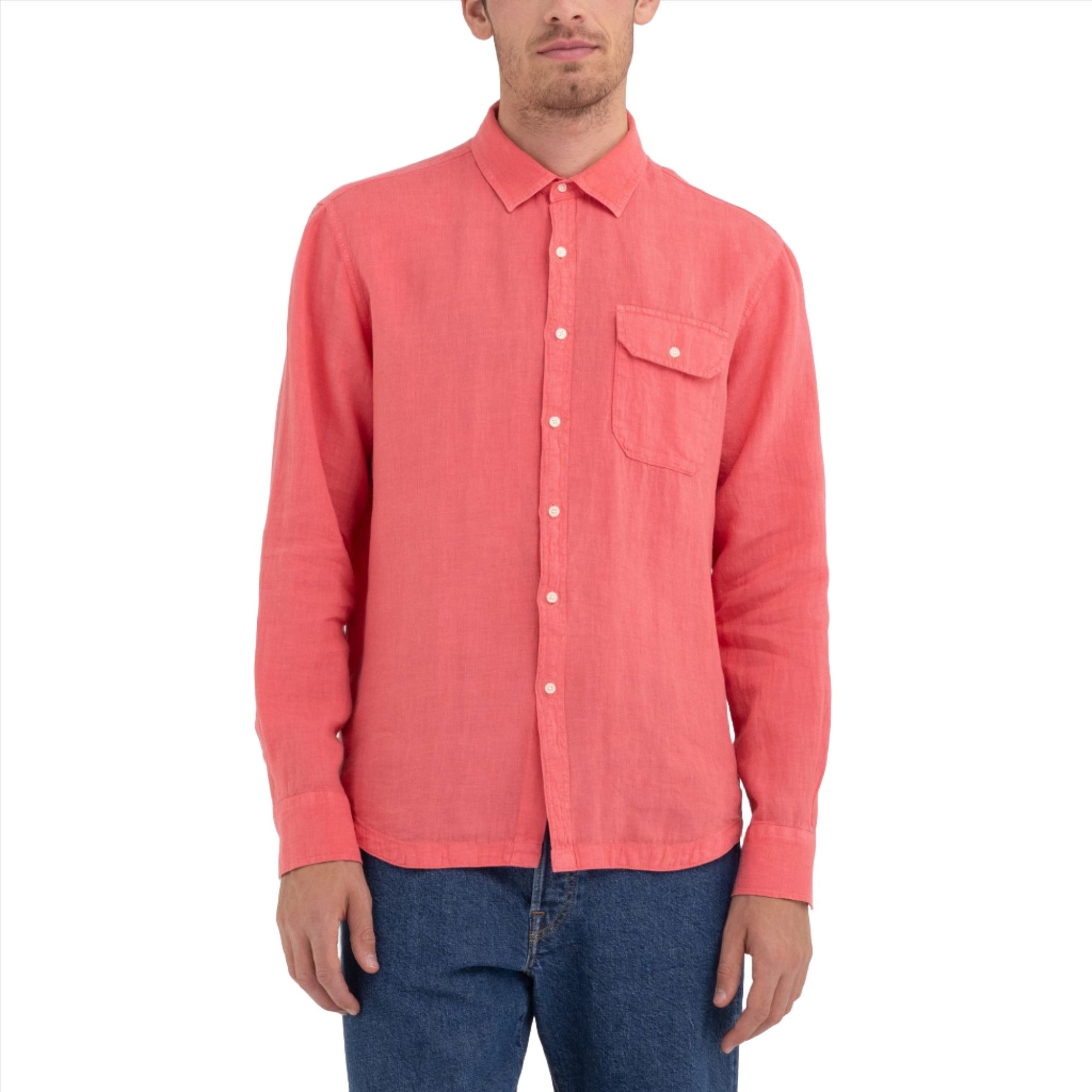 Replay Men's Regular Fit Shirt in Linen with Pocket