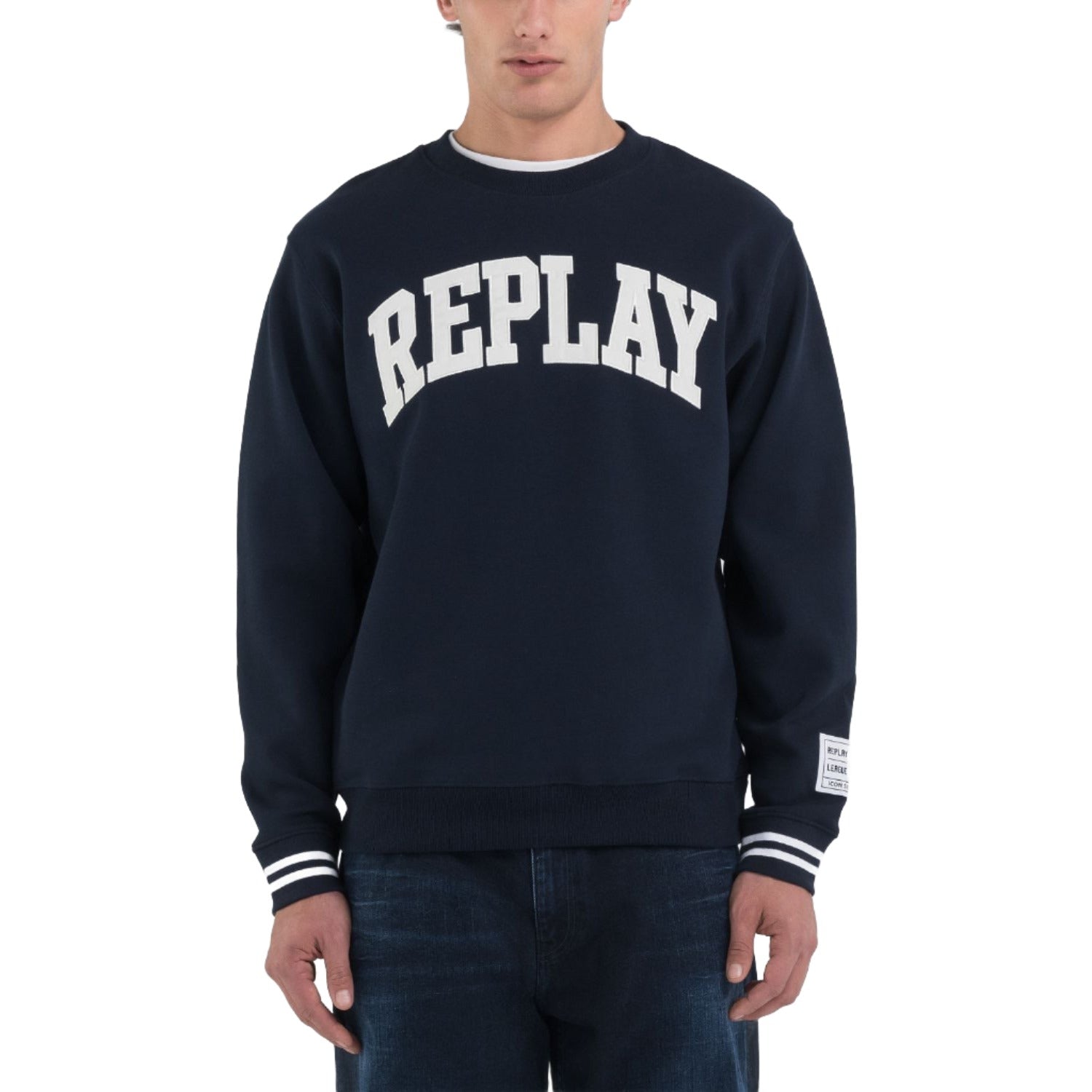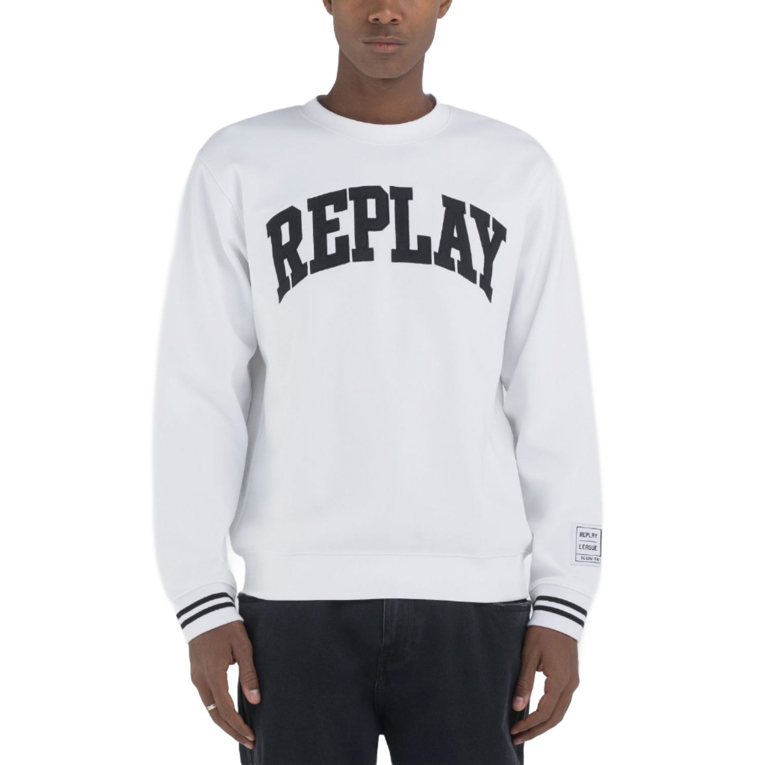 Replay Men's Sweatshirt with Striped Edges and Appliques