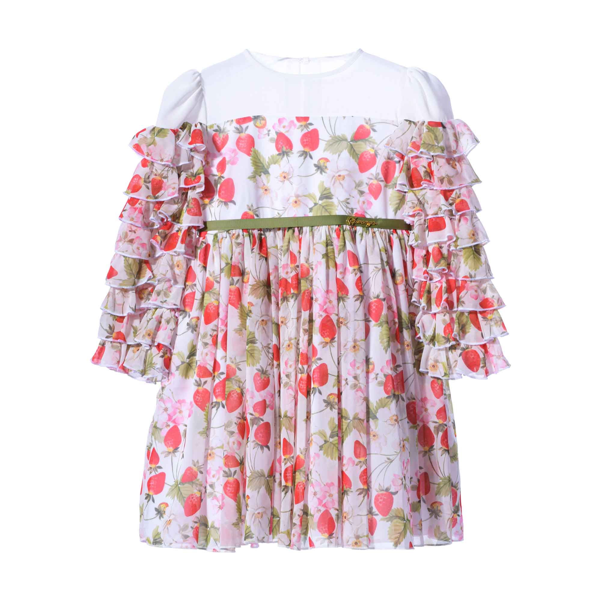 The Piccola Speranza Kids Girl's Floral Red Dress is a beautiful and stylish dress perfect for special occasions. It features a round neckline and long layered sleeves for an elegant look. The concealed zip fastening at the back ensures a secure fit, while the tie with contrast belt adds a special touch. The pleated skirt at the waist adds a bit of texture and volume to the dress. This dress is lined for comfort and features an all-over floral and fruit print for a fun and playful look. The logo at the belt finishes off the look and adds a touch of sophistication. This dress is perfect for special occasions and will surely make your little girl feel like a princess. SPECIFICATIONS: