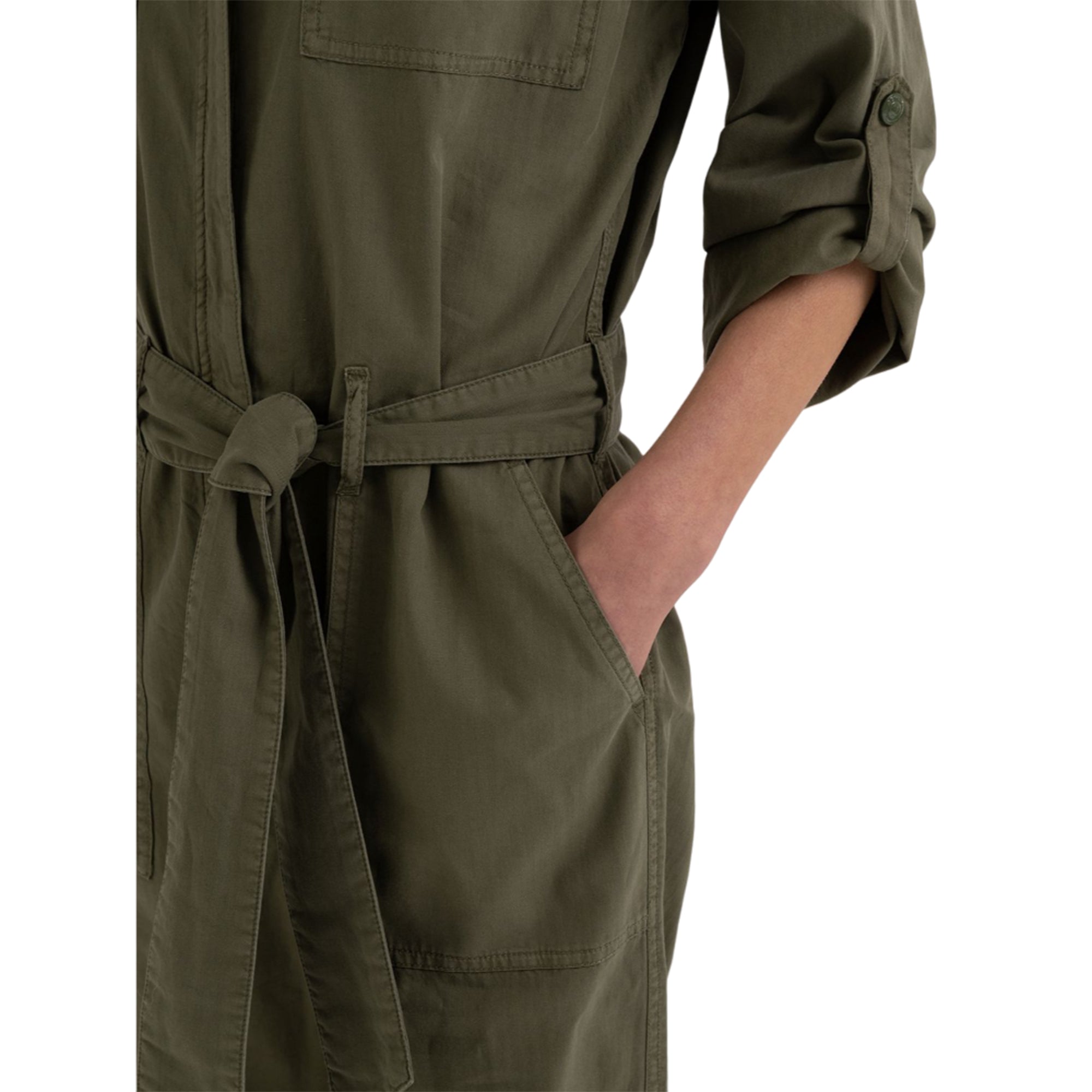Long overalls made of garment-dyed cotton and linen with herringbone pattern. With multi pockets and regular fit, the garment features a front fastening with covered buttons. Ankle length and turned-up hem.