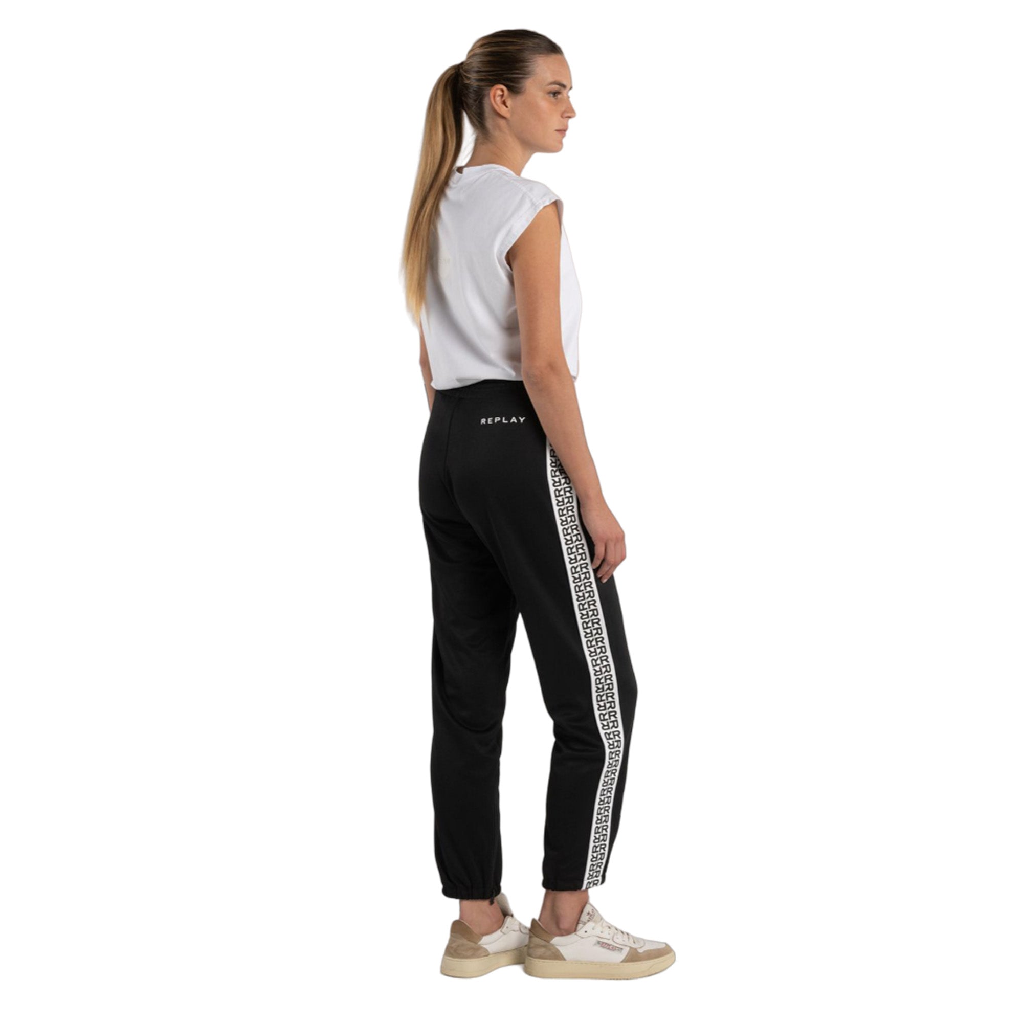 Jogger trousers made of technical fabric with embossed stitchings. With drawstring at the waist, the garment features a regular fit. The item with customized bands on the sides is refined by the stretch cuffs with contrasting-colored zipper on the inner part.